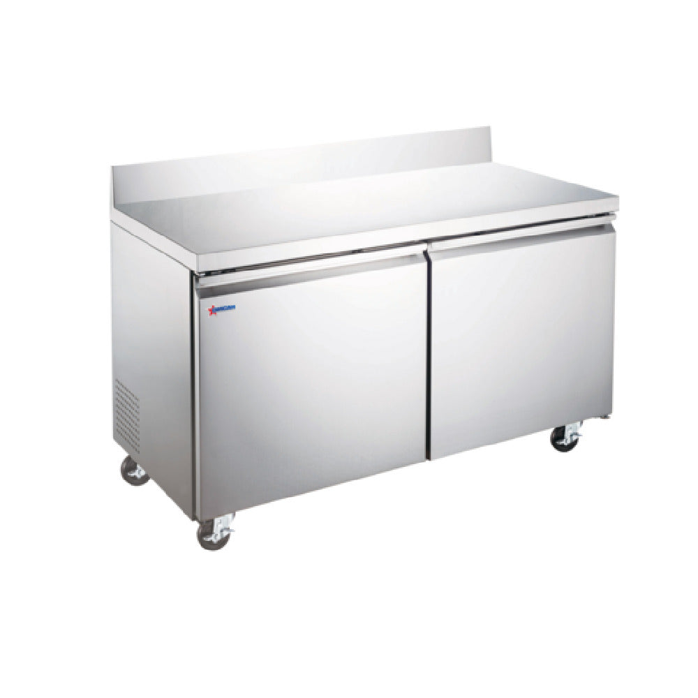 The Omcan 50098 (FR-CN-1524-BS-HC) Worktop Freezer Two-section 60"W is a highly functional and robust refrigeration unit tailored for diverse commercial needs. This two-section freezer boasts a 15 cu. ft. capacity, providing ample storage space for various frozen goods. It features two solid doors and includes two adjustable shelves, allowing for customized organization to suit different inventory requirements. The freezer is equipped with a digital control system, ensuring precise temperature management, while its automatic defrost function enhances operational efficiency. Constructed with a stainless steel interior and exterior, the unit promises durability and ease of cleaning, making it ideal for high-demand environments. The 3-1/2" backsplash protects walls from spills, maintaining a clean workspace. Utilizing the environmentally friendly R290 Hydrocarbon refrigerant, this freezer supports energy-efficient operations. The rear-mounted self-contained refrigeration system ensures optimized cooling performance. Operating on a 115v/60/1-ph power supply with a 5.2 amp draw, it is compatible with standard electrical setups using a NEMA 5-15P plug. Certified with cETLus and ETL-Sanitation, the Omcan 50098 meets rigorous sanitation and safety standards, making it a reliable choice for restaurants, cafes, and catering businesses seeking dependable refrigeration solutions.