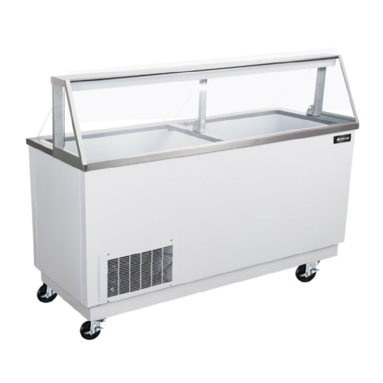 Omcan USA, 50122, (FR-CN-0089) Ice Cream Dipping Display, 89"W, (16) 3 gallon tub capacity, (12) storage, (2) sliding doors with locks, sneeze guard, automatic defrost, white exterior, casters, R290 Hydrocarbon refrigerant, 115v/60/1-ph, 7.1 amps, NEMA 5-15P, cETLus, ETL-Sanitation