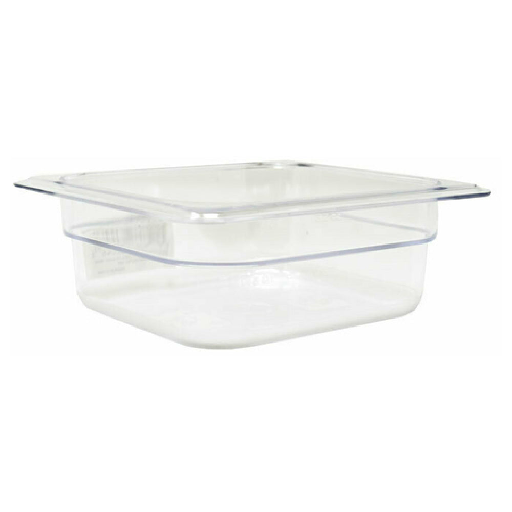Omcan 80046 (80046) Food Pan 1-6 Size 6-15/16" X 6-3/8" X 2-1/2" Deep is a high-quality food storage solution crafted from clear polycarbonate, making it an excellent choice for commercial kitchens and food service establishments. Its dimensions of 6-15/16 inches by 6-3/8 inches with a depth of 2-1/2 inches, provide a compact yet functional size that fits seamlessly into a variety of setups, especially those requiring 1/6 size pans for organized storage and optimal space utilization. The clear polycarbonate material not only offers durability and resistance to impacts but also ensures visibility of contents, making inventory management more efficient. Additionally, being NSF certified, this food pan meets strict health and safety standards, ensuring its suitability for professional food environments. The Omcan 80046 is ideal for use in salad bars, buffets, or any location where food needs to be stored and displayed hygienically and effectively. Its versatile design is perfect for chefs and food service professionals seeking reliable food storage solutions that enhance operational efficiency while maintaining high standards of food safety. Whether used for preparation, storage, or service, this food pan is an indispensable component of any modern kitchen setup.