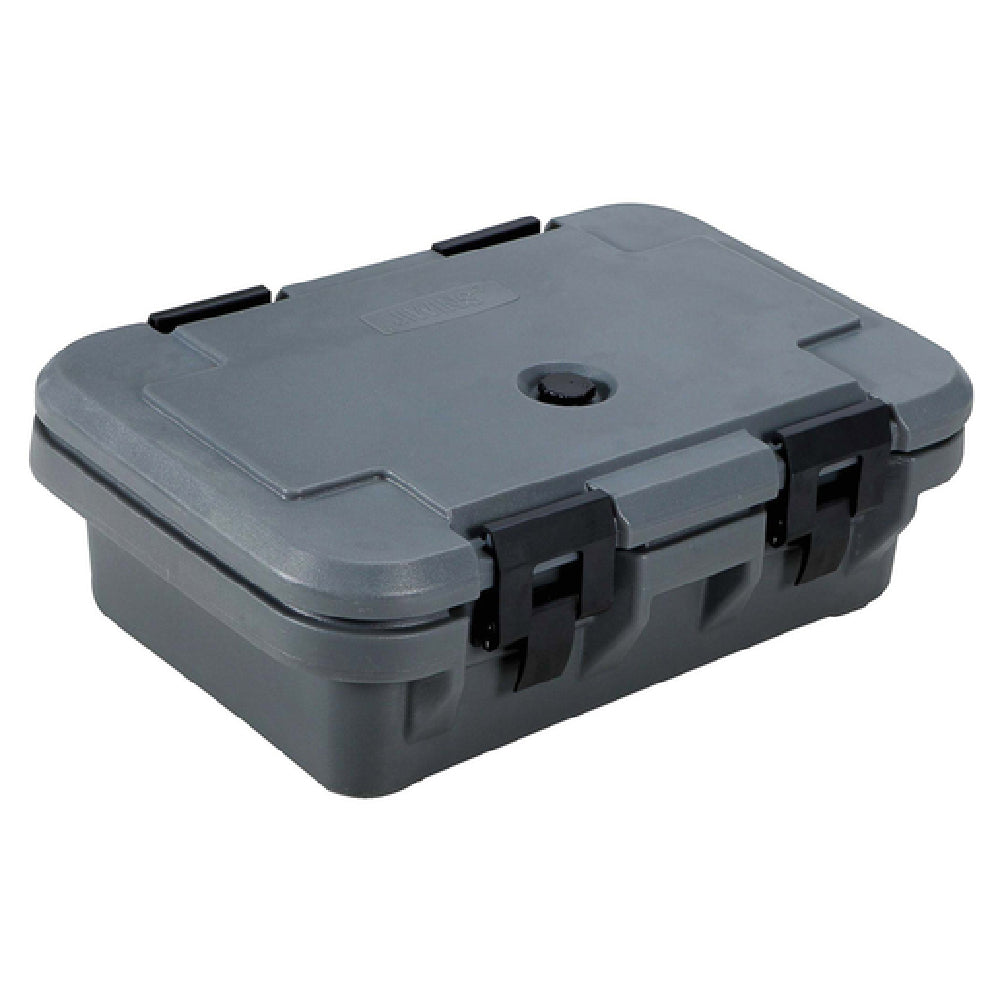 The Omcan 80164 (80164) Food Transport Container Top Loading Insulated is a highly functional and efficient solution for catering and food service industries needing reliable transportation of food items. This container is specifically designed to accommodate pans measuring up to 4 inches in depth, providing sufficient space for various food types. Its top-loading design ensures easy access and loading, making it suitable for busy kitchen environments where time efficiency is crucial. Constructed from gray polypropylene, this unit is both durable and lightweight, allowing for effortless handling and transportation. The molded-in handles further enhance its portability, ensuring ease of use even when fully loaded. Additionally, the container's insulated design is a key feature, maintaining the temperature of the contents, whether hot or cold, during transit. Certified by NSF, it meets high standards for public health protection, ensuring that it is a safe choice for food transport. The Omcan 80164 Food Transport Container excels in delivering quality and reliability, tailored to meet the demands of restaurant kitchens, catering services, and other food-related businesses seeking dependable food transportation solutions.
