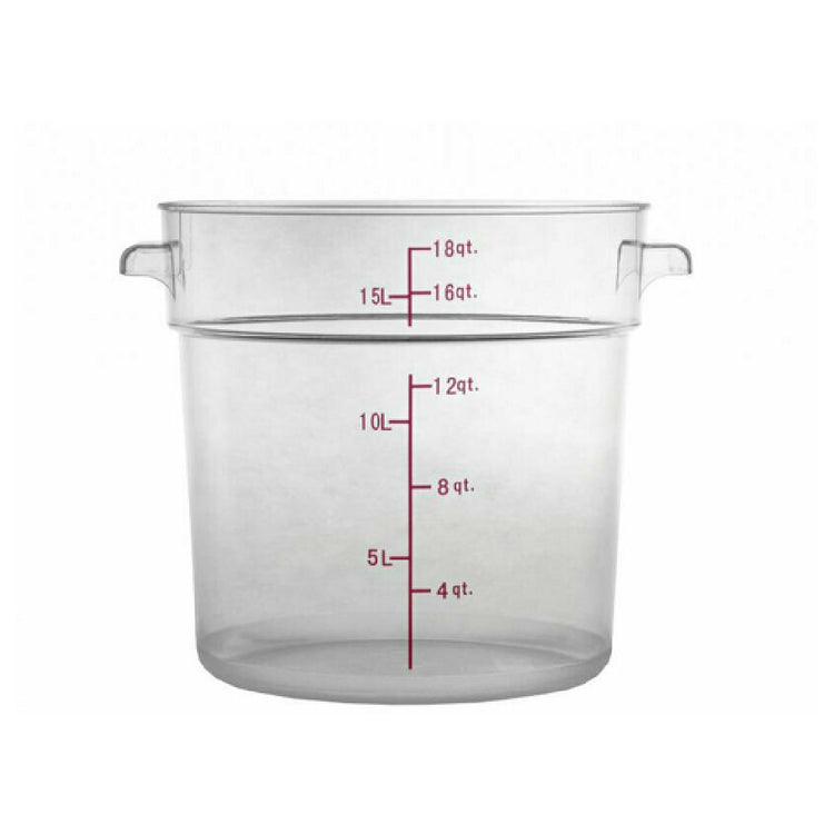 The Omcan 80183 (80183) Food Storage Container - 18 Quart Round is a versatile and durable storage solution, ideal for commercial kitchens and food service establishments. With a generous capacity of 18 quarts, this round container is crafted from clear polycarbonate, providing both strength and visibility for easy inventory management. Its transparent design allows users to quickly identify contents, reducing the need for unnecessary openings and helping maintain freshness. The Omcan 80183 is NSF certified, ensuring it meets strict public health and safety standards, making it a reliable choice for maintaining food quality and safety. Whether you're operating a bustling restaurant, catering service, or institutional dining facility, this food storage container is designed to withstand the rigors of daily use, thanks to its robust construction. Its round shape allows for efficient use of storage space and facilitates thorough cleaning, supporting high hygiene standards. The container's material is resistant to stains and odors, ensuring longevity and cleanliness over time. The Omcan 80183 is a practical asset for any food service operation, balancing functionality with durability, and addressing the needs of professionals who demand quality and efficiency in their kitchen equipment.