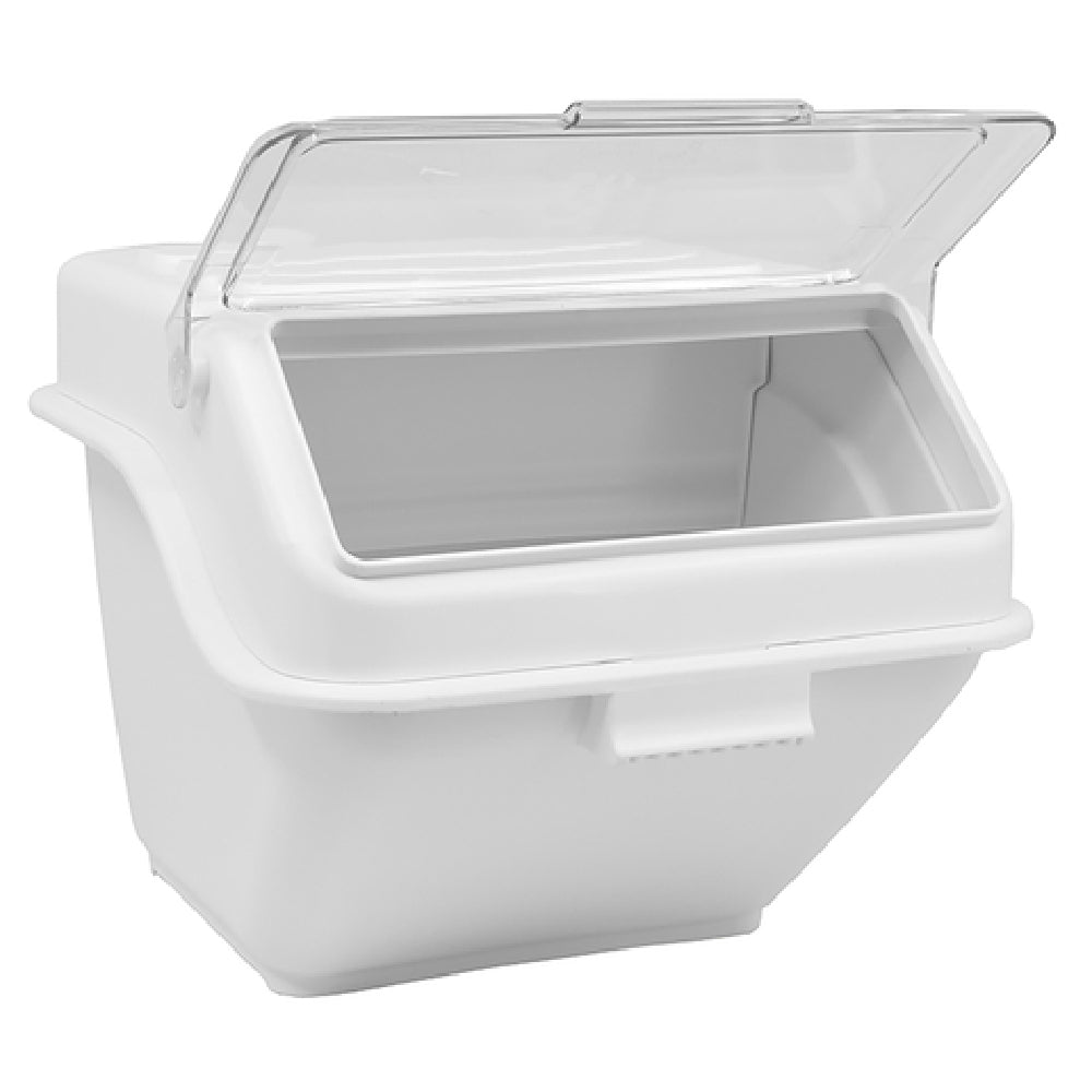 The Omcan 80186 (80186) Shelf Ingredient Bin is a versatile storage solution with a 10.6-gallon capacity, designed to meet the needs of various segments within the food service industry. This ingredient bin is crafted with functionality in mind, allowing businesses to store a significant amount of ingredients in an organized manner. The inclusion of a scoop ensures that ingredients can be accessed easily and efficiently. Its stackable design maximizes storage space, making it an excellent choice for kitchens with limited room. The clear cover allows for quick visibility of contents, assisting in inventory management and minimizing the risk of cross-contamination. Constructed in a neutral white color, it seamlessly integrates into any kitchen decor while maintaining a clean appearance. Additionally, the Omcan 80186 is NSF certified, ensuring adherence to public health and safety standards, which is crucial for establishments maintaining strict hygiene protocols. This ingredient bin is a reliable and practical choice for restaurants, bakeries, and other food service operations that require durable storage solutions. Its thoughtful design and efficiency make it a valuable asset in maintaining organized and sanitary food preparation environments.