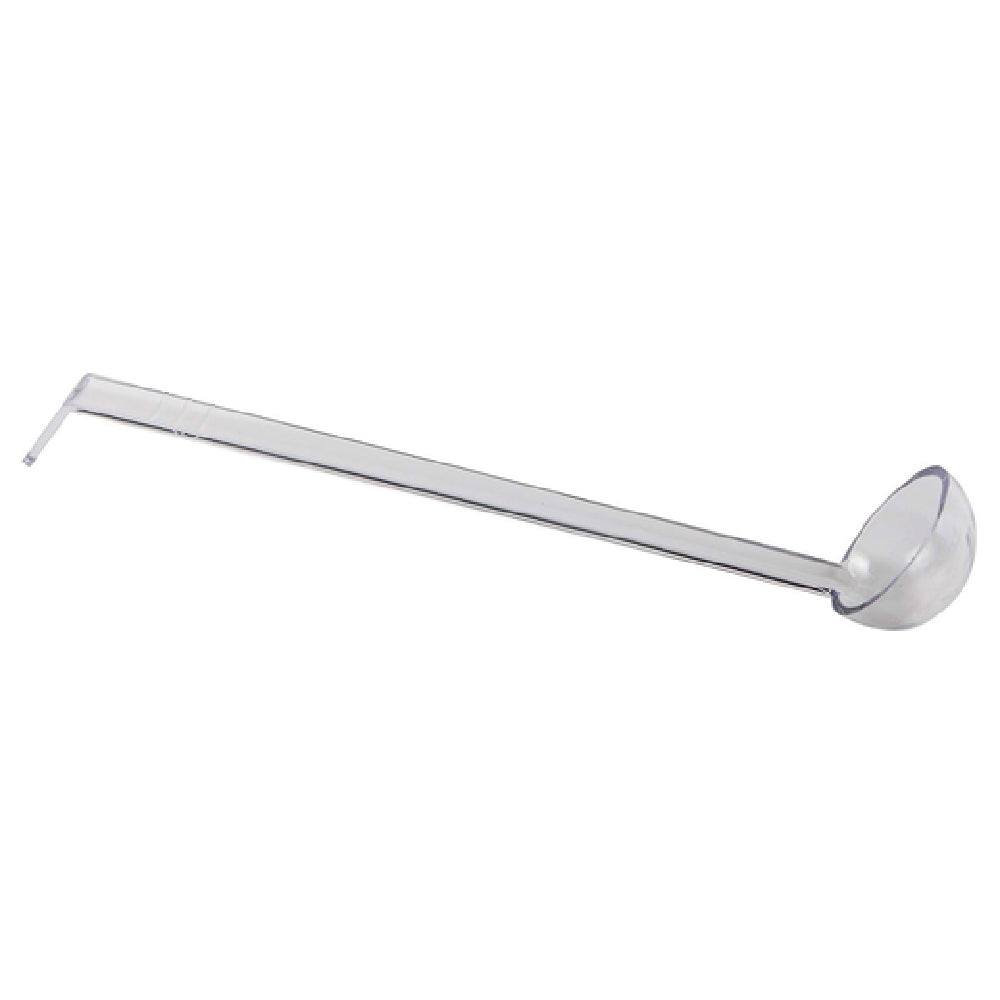 The Omcan 80220 (80220) Ladle 3/4 Oz. 8-1/2" is a versatile kitchen tool designed for precision and durability, catering to various culinary applications. With its 3/4 oz. capacity, this ladle is an essential utensil for precise portion control, making it particularly valuable in commercial kitchens, restaurants, and catering services where consistency is key. The ladle's 8-1/2" length ensures ease of use, allowing for efficient serving from deep pots and containers without compromising comfort. Its one-piece polycarbonate construction provides exceptional durability and clarity, reducing the risk of breakage compared to traditional materials and ensuring longevity in high-traffic environments. The clear design allows for easy identification of contents, enhancing operational efficiency. Certified by NSF, this ladle meets rigorous public health and safety standards, making it a reliable choice for establishments that prioritize hygiene and quality. The Omcan 80220 ladle's robust design and practical features make it an indispensable tool for any food service operation seeking both functionality and compliance with industry standards.