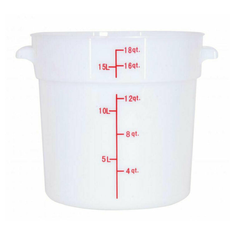 The Omcan 80238 (80238) Food Storage Container is an 18-quart, round storage solution designed to meet the high standards of food safety and durability. Constructed from polypropylene, this storage container provides a robust and reliable means for storing a variety of food products, ensuring they remain fresh and uncontaminated. The container's white color aids in maintaining a clean and professional appearance, suitable for any commercial kitchen environment. With its NSF certification, the Omcan 80238 meets strict public health and safety regulations, making it an ideal choice for a variety of food service operations, including restaurants, catering businesses, and institutional kitchens. Its generous 18-quart capacity makes it versatile enough to accommodate bulk storage needs, while its round shape facilitates easy handling and efficient use of space in crowded storage areas. This makes it particularly valuable for operations with limited storage space. The Omcan 80238 (80238) Food Storage Container is a practical and valuable asset for food service professionals seeking a reliable and compliant storage solution that balances capacity, functionality, and durability with the necessary industry standards.