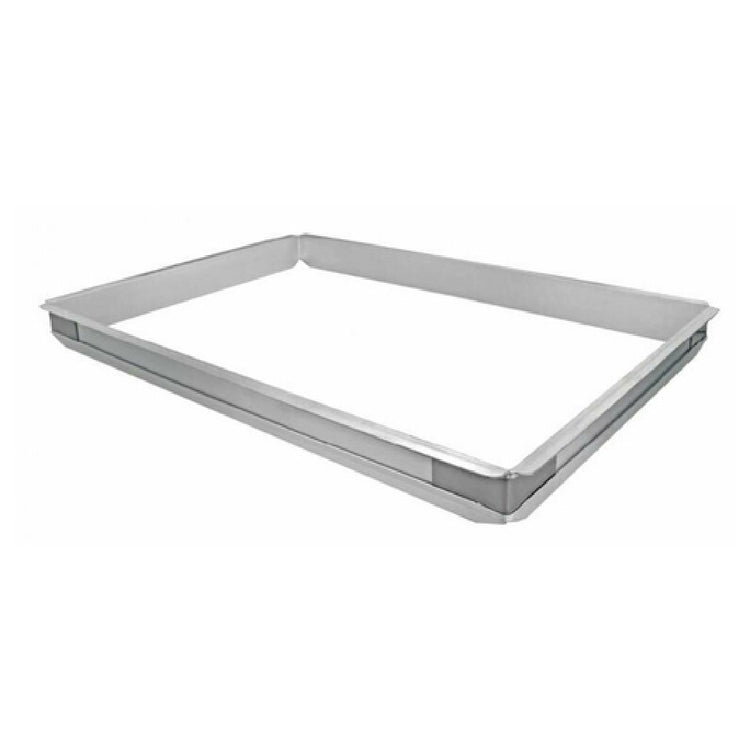 The Omcan 80252 (80252) Sheet Pan Extender 18" W x 26" D x 2" H is a valuable accessory designed for use with full-size pans, enhancing their capacity and functionality. Crafted from durable aluminum, this extender is precisely engineered to fit seamlessly over standard full-size sheet pans, offering an additional 2 inches in height. This practical addition is ideal for bakeries, catering services, and commercial kitchens that require increased baking volume without compromising the quality of their goods. The extender's aluminum construction ensures optimal heat distribution and durability, making it a reliable choice for high-temperature baking applications. Its lightweight design allows for easy handling and storage, while its robust build provides long-lasting performance in demanding kitchen environments. The Omcan 80252 Sheet Pan Extender is an essential tool for professionals seeking to maximize their baking productivity and efficiency, making it a versatile asset in various segments of the foodservice industry. Its compatibility with full-size pans underscores its adaptability, catering to different market needs by allowing for greater versatility in baking large batches or creating layered dishes with ease.