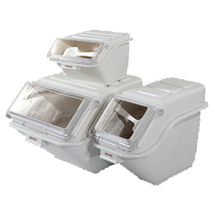 Omcan 80320 (80320) Shelf Ingredient Bin is an expertly designed storage solution that integrates functionality and efficiency for diverse culinary environments. With a 2-gallon capacity, this bin is optimal for storing various ingredients while keeping them easily accessible. The product is stackable, allowing for efficient use of space in kitchens, enhancing organization and operational flow. A clear cover provides visibility to contents without the need for opening, ensuring quick identification of ingredients. The bin is constructed in a clean, white design, complementing professional kitchen aesthetics, and is equipped with an included scoop that facilitates easy and mess-free distribution of ingredients. Importantly, the Omcan 80320 is NSF certified, highlighting its compliance with industry standards for public health and safety, which is crucial for food service establishments. Its robust design and practical features make it a versatile choice for restaurants, bakeries, and catering services, where space optimization and ingredient management are vital. The Omcan 80320 (80320) Shelf Ingredient Bin is not only a storage accessory but a vital component for maintaining efficiency and hygiene in culinary operations.