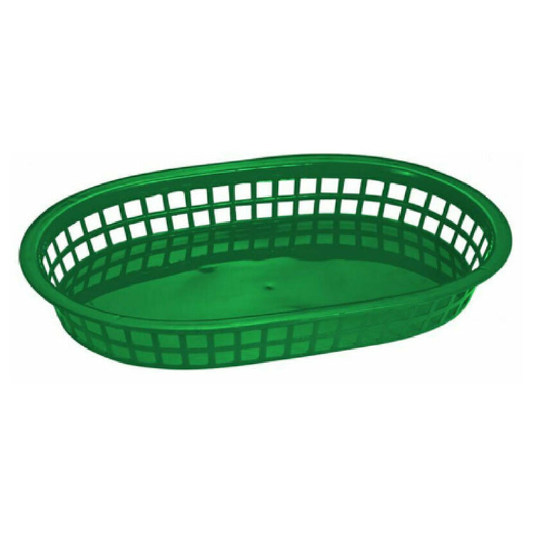 The Omcan 80354 (80354) Platter Basket 10-3/4 x 7-1/4" x 1-1/2" Oval is a versatile serving solution designed for various food service environments. With its dimensions of 10-3/4 x 7-1/4" x 1-1/2", this oval platter basket provides ample space for presenting an array of dishes, from appetizers to main courses. Constructed from durable plastic, this platter basket is both lightweight and resilient, making it an excellent choice for high-traffic establishments that require long-lasting serving ware. The vibrant green color adds an eye-catching element to any dining setting, enhancing the visual appeal of the served dishes. This platter basket's unique shape and size enable efficient stacking and storage, optimizing space in kitchens and service areas. Ideal for restaurants, cafes, and catering services, the Omcan 80354 platter basket offers a reliable and attractive way to serve food, tailored to the needs of the hospitality industry. Its robust construction and practical design embody a commitment to quality and functionality, making it an indispensable asset for any food service operation aiming to impress with both style and practicality.