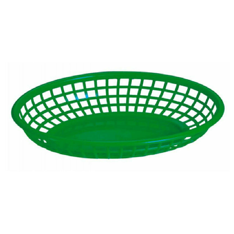The Omcan 80359 (80359) Platter Basket is a versatile oval serving solution, measuring 9-1/4 inches in length, 5-3/4 inches in width, and 1-7/8 inches in height. Constructed from durable plastic, this basket provides a lightweight yet sturdy option for various dining environments. Its vibrant green color adds a touch of style, making it an appealing choice for casual dining settings, including restaurants, cafes, and catering events. The basket's size and shape are optimized for accommodating a range of appetizers, entrees, or side dishes, enhancing presentation and functionality. With its easy-to-clean surface, it ensures convenience in high-traffic food service areas. The Omcan 80359 platter basket's practical design also lends itself well to outdoor dining establishments, such as food trucks and picnic settings, where durability and aesthetics are equally important. As a part of Omcan's extensive line of kitchenware, this platter basket reflects the brand's commitment to quality and innovation, catering to the needs of food service professionals seeking reliable and attractive serving solutions. This product's specific dimensions and material composition highlight its adaptability and efficiency, making it a valuable asset across various market segments in the hospitality industry.