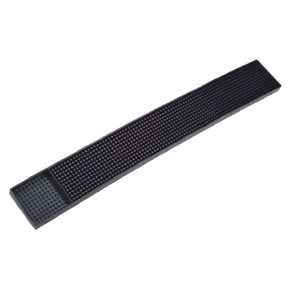 The Omcan 80365 (80365) Bar Spill Mat is a meticulously designed accessory measuring 27 inches by 3-1/4 inches, offered in a sleek black color. This spill mat is a valuable addition to any bar setting, providing effective protection against spills and drips that can occur during the preparation and serving of beverages. Its elongated design is perfectly suited for placement alongside bar countertops, ensuring that accidental spills are contained, thus maintaining a clean and professional environment. Crafted with durability in mind, the mat’s black coloration not only complements a variety of bar decors but also camouflages stains and marks, preserving its appearance over time. This spill mat is particularly beneficial for high-traffic bar areas, where maintaining hygiene and cleanliness is paramount. The Omcan 80365 spill mat is an essential tool for bartenders and mixologists, providing a non-slip surface that aids in preventing glassware from tipping over. It caters to diverse market segments within the hospitality industry, from bustling nightclubs to upscale restaurants, where efficiency and cleanliness are crucial. The Omcan 80365 (80365) Bar Spill Mat combines both practicality and style, offering a reliable solution to manage everyday bar challenges efficiently.