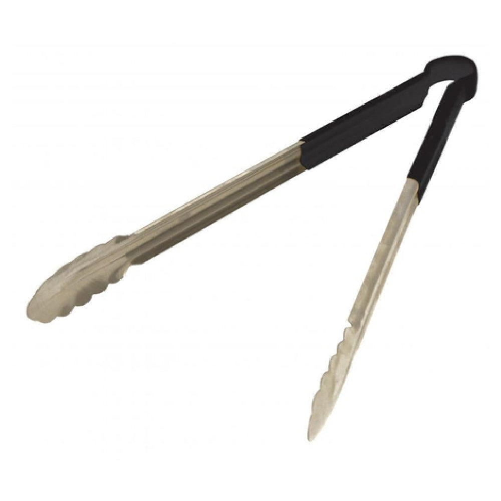 The Omcan 80550 - 80550 Utility Tongs 16" Stainless Steel are a versatile kitchen accessory, designed to meet the demands of various culinary environments with precision and reliability. These utility tongs are crafted from high-quality stainless steel, ensuring durability and resistance to corrosion, making them an enduring choice for busy commercial kitchens. The 16-inch length provides ample reach and control, making them ideal for a range of tasks from grilling to food service. A standout feature of these utility tongs is the black plastic coated handle, which enhances grip and comfort during use, reducing hand fatigue over extended periods. The design not only prioritizes functionality but also safety, as the coated handle offers a heat-resistant barrier, safeguarding the user’s hands during high-temperature operations. The Omcan 80550 - 80550 Utility Tongs are well-suited for diverse market segments within the food industry, including restaurants, catering services, and hospitality businesses, due to their robust construction and ergonomic design. These utility tongs exemplify a commitment to quality and practicality, making them an indispensable tool in any professional kitchen setting.