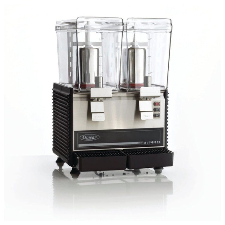 The Omega OSD20 Omega Drink Dispenser stands out with its compact design, featuring two 3-gallon polycarbonate containers that ensure durability and ease of use. This dispenser integrates an extra-large cooling pump and evaporator, providing efficient cooling capabilities suitable for various industry segments, from small cafes to large catering events. Its rotary system enhances the dispensing process, while the removable drip tray ensures cleanliness and convenience. The non-drip dispensing mechanism further enhances its practicality, minimizing mess and waste. Constructed with a robust stainless steel cylinder, frame, and front panel, the OSD20 is built to withstand substantial use. Powered by a 1/3 HP motor operating on 120v/60/1-ph, it runs at 420 watts, offering consistent performance with reliable power consumption. The cETLus certification underscores its compliance with safety and performance standards, making it a dependable choice for businesses seeking a high-quality beverage dispensing solution. The Omega OSD20 is tailored to meet the demands of different market segments, providing a blend of functionality, durability, and efficiency.