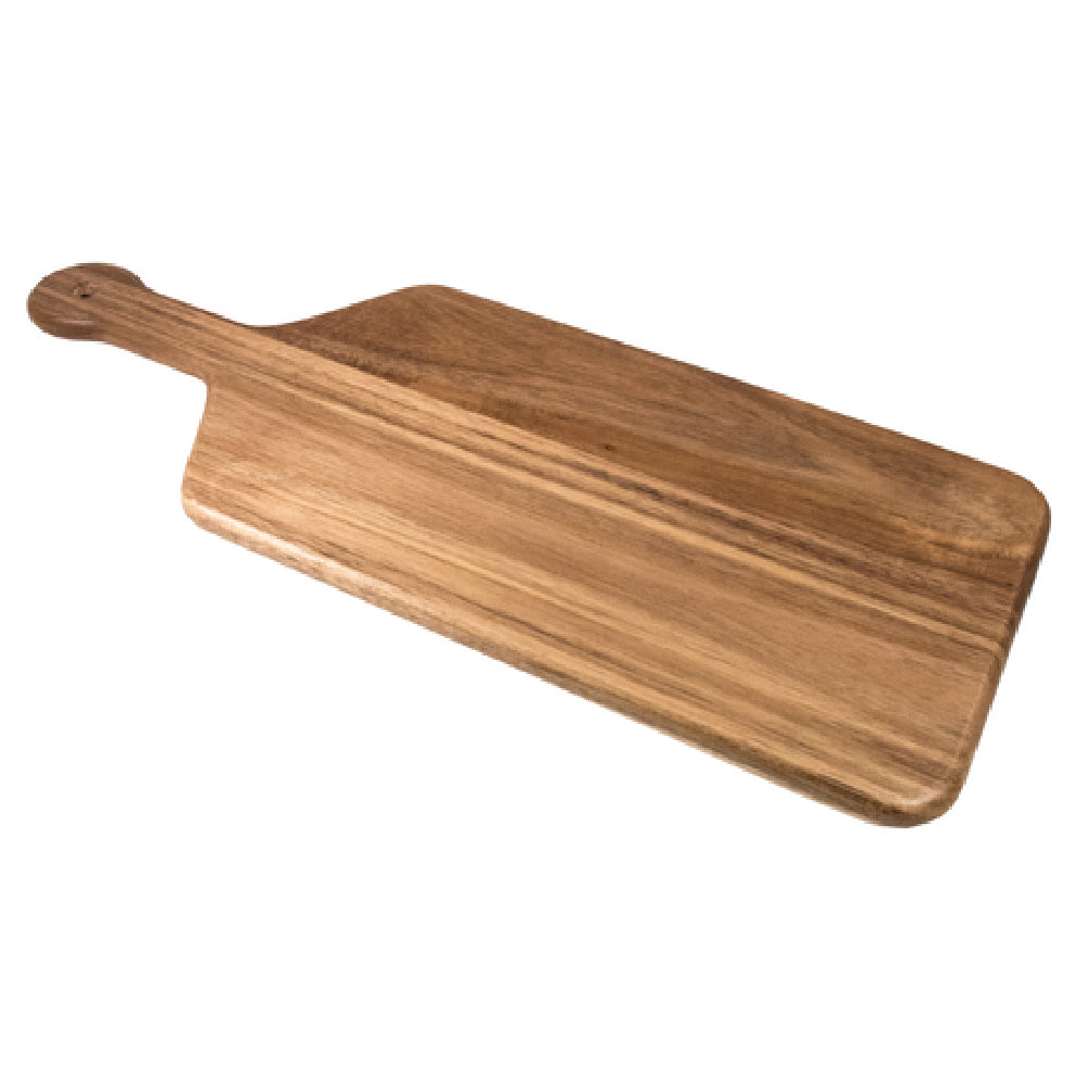 On The Table 103 DWS Paddle Board 20" x 8" Rectangular is a versatile kitchen accessory crafted from natural acacia wood, known for its durability and rich, warm tones. This flat, rectangular paddle board provides a generous surface area, measuring 20 inches by 8 inches, making it ideal for various culinary preparations and presentations. Its sleek and practical design is tailored to meet the demands of both professional and home chefs, offering a sturdy platform for chopping, slicing, and serving. The board's standout feature is its dishwasher-safe attribute, a rare convenience in wooden kitchenware, ensuring easy maintenance and longevity. As a multi-functional tool, this paddle board's elegant aesthetic makes it an attractive centerpiece for dining presentations, especially when serving charcuterie or artisanal bread. It caters to a broad segment of the culinary industry, from gourmet restaurants seeking stylish serving solutions to home cooks desiring practical yet beautiful kitchen tools. The On The Table 103 DWS Paddle Board combines functionality with an organic touch, making it an essential addition to any kitchen setup, where quality craftsmanship meets everyday practicality.