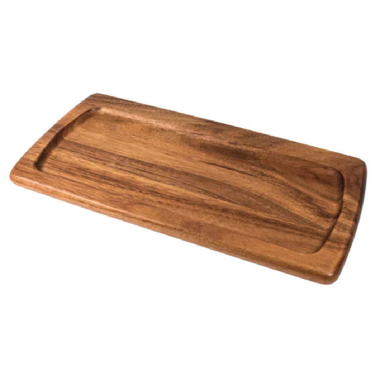 On The Table 105 Plate Small 14" X 7" is a versatile dining solution crafted from acacia wood, known for its durability and rich, natural aesthetics. This plate offers a compact yet functional rectangular design, measuring 14 inches by 7 inches, making it an ideal choice for serving appetizers, snacks, or desserts. Its convenient size caters to a variety of dining settings, whether for personal use at home or in a professional restaurant environment. The acacia wood construction not only provides a visually appealing, natural finish but also serves as a robust material that withstands regular use. This plate is designed with practicality in mind, being dishwasher safe, which ensures easy cleaning and maintenance, enhancing its suitability for busy kitchens. The On The Table 105 Plate Small combines functionality with style, presenting a harmonious blend of aesthetics and practicality. Its natural wood grain adds a touch of elegance, fitting seamlessly into both contemporary and rustic table settings. This product caters to different segments within the dining industry, providing an eco-friendly and visually appealing option for establishments looking to elevate their presentation and dining experience.