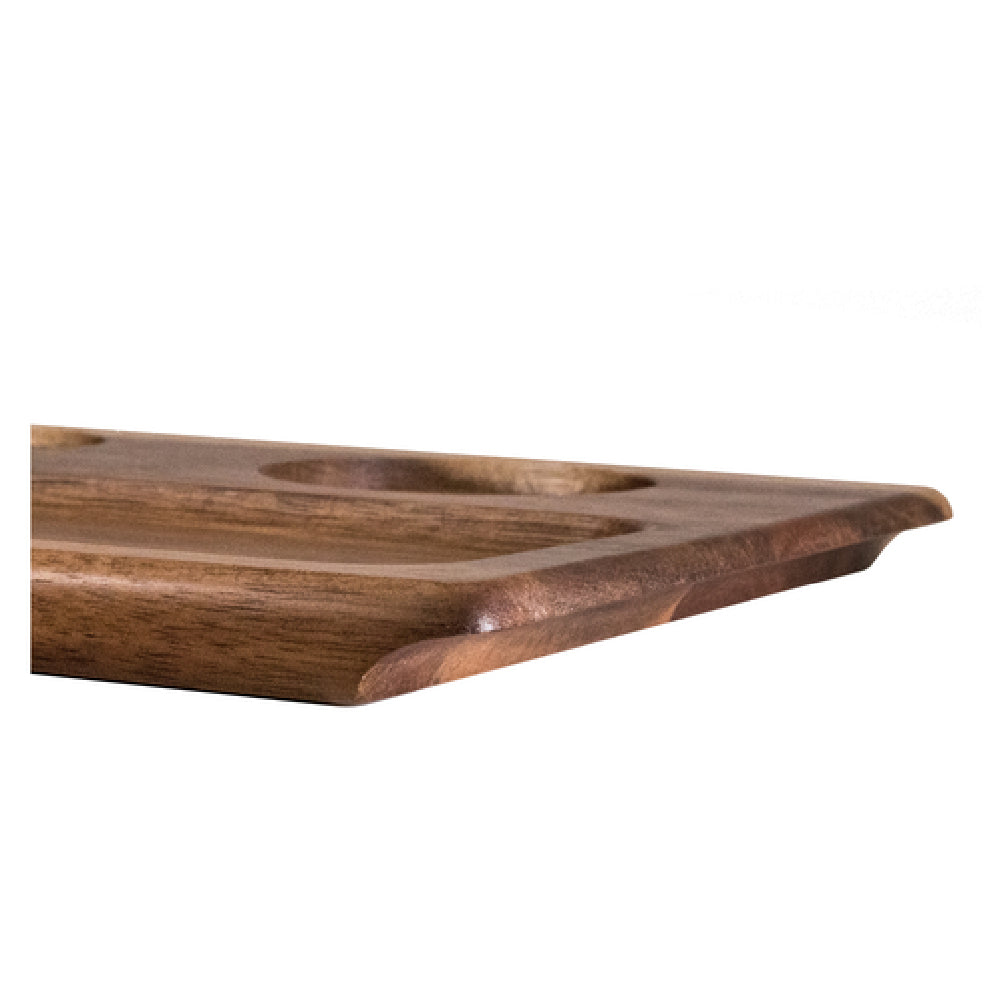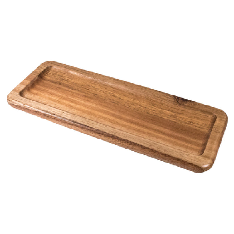 The On The Table 110-AA Appetizer Plate Medium is a sophisticated dining accessory measuring 13" x 5" in a sleek rectangular shape. Crafted by On The Table LLC, this plate is meticulously designed from acacia wood, showcasing its natural allure and durability. It is a versatile piece, ideal for various dining settings, from casual gatherings to upscale events, making it a valuable addition to both residential and commercial kitchens. The use of acacia wood not only adds an element of elegance but also ensures longevity, resisting wear and tear over time. Its medium size makes it perfect for serving a range of appetizers, providing ample space without overwhelming the dining table. A key feature of this plate is its dishwasher-safe nature, offering convenience and ease of maintenance, which is particularly beneficial for busy food service environments. This characteristic, combined with its stylish aesthetic, makes it a practical choice for different market segments, including restaurants, caterers, and home entertainers who value both functionality and design. The On The Table 110-AA Appetizer Plate Medium stands out for its blend of natural beauty and practical usability, catering to a wide array of dining needs and enhancing the presentation of culinary creations.