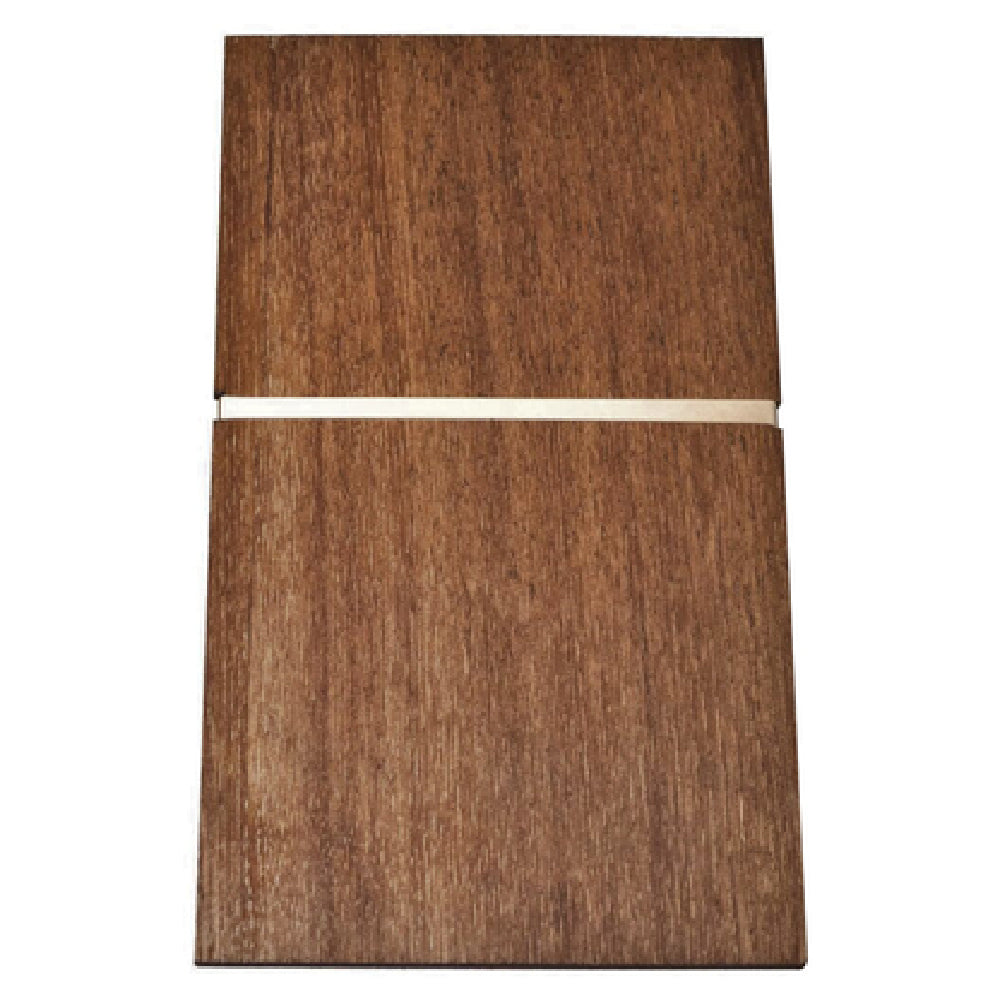 The On The Table 302-C Check Presenter Board is a meticulously crafted accessory for the hospitality industry, measuring 7" x 4", and featuring a mahogany veneer wood finish that adds an elegant touch to any dining establishment. Designed with a single tan band, it securely holds checks in place, ensuring a seamless transaction experience for guests and staff alike. This check presenter board is not only functional but also aesthetically pleasing, complementing a variety of restaurant decors. The compact size of the board makes it a convenient tool for waitstaff to handle, streamlining the payment process. Its sturdy construction and quality materials provide durability, making it a reliable choice for high-traffic environments. The On The Table 302-C Check Presenter Board is a valuable addition to any restaurant, cafe, or hotel, offering a practical solution for presenting checks while enhancing the overall dining experience with its sophisticated appearance. This product stands out in the market due to its combination of functionality, durability, and style, catering to the needs of diverse segment markets within the hospitality industry.