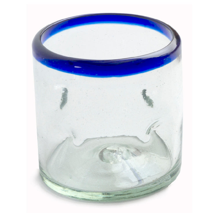 Orion Trading & Design, G02-CRP, Double Old Fashion Glass, 14 oz., 3-1/2" dia. x 3-1/2"H, recycled Mexican glass, pinched, cobalt rim
