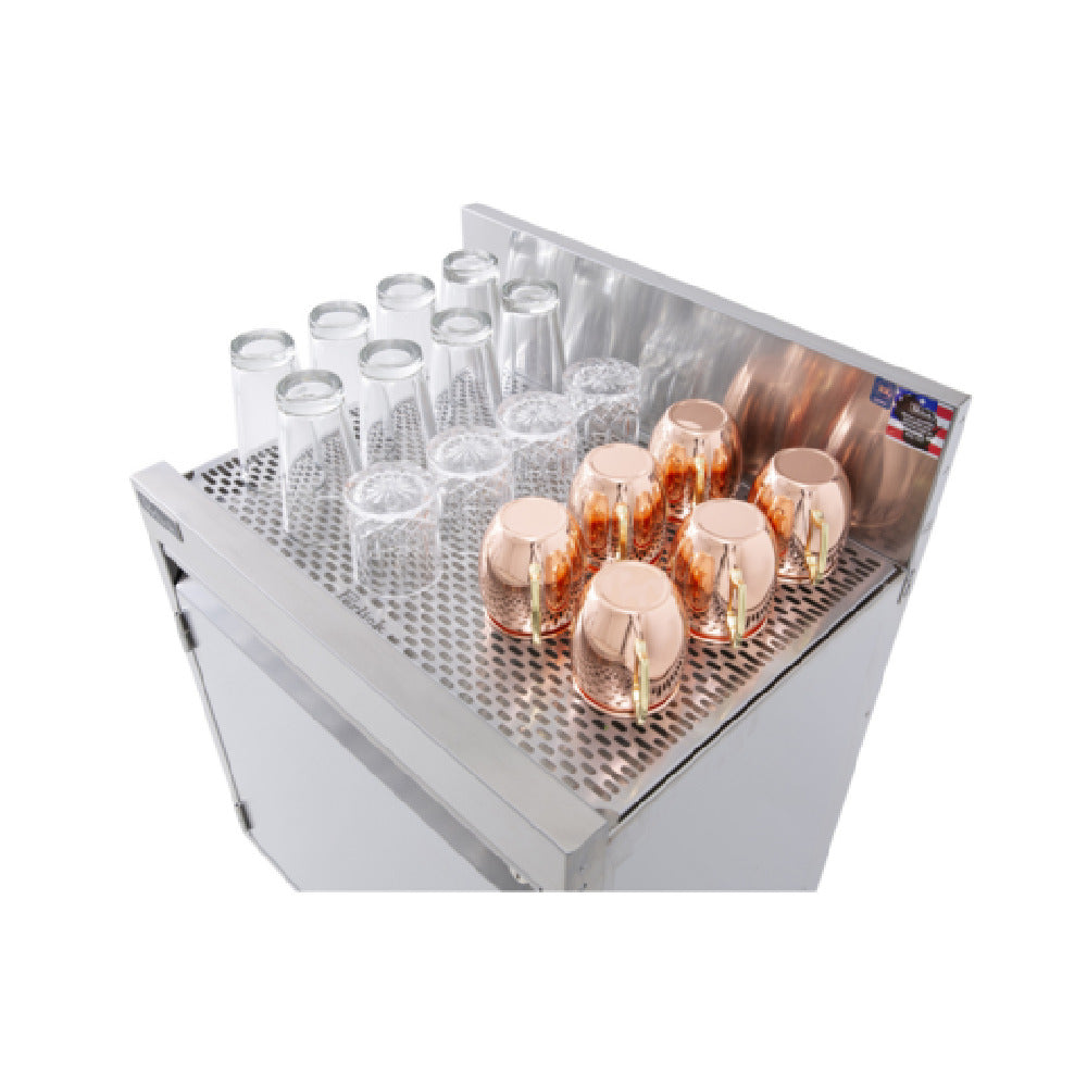 The Perlick 1032968-21-R TSF Series 21"W Perforated Drainboard Insert is a specialized accessory designed to enhance the functionality and cleanliness of your workspace. Constructed from high-quality stainless steel, this drainboard insert embodies durability and long-lasting performance. The unique 'Stadium' shaped perforations are a standout feature, engineered to efficiently manage water drainage while providing a sleek, modern appearance that complements any professional setting. With a width of 21 inches, this drainboard insert is factory installed, ensuring a seamless integration into your existing setup. This product is particularly valuable across various market segments within industries that demand high standards of hygiene and efficiency, such as food service, hospitality, and beverage sectors. The Perlick 1032968-21-R not only helps in maintaining a tidy and organized working environment but also contributes to prolonging the lifespan of your countertop by preventing water accumulation and potential damage. Its stainless steel construction offers both aesthetic appeal and resistance to corrosion, making it a prudent investment for establishments seeking reliable and effective drainage solutions. Overall, this perforated drainboard insert is an essential component for any industry looking to optimize their operational efficiency while maintaining superior cleanliness standards.