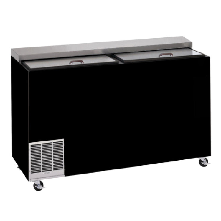 The Perlick FR48RT-BS-STK (QuickShip) Glass Froster Underbar 48"W is a premium solution for establishments aiming to serve perfectly frosted glasses. This unit features a self-contained refrigeration system with a temperature range of -10°F to 10°F, ensuring optimal conditions for glass frosting. With its 12.5 cu.ft. interior volume, it provides ample space for a variety of glass sizes. The froster boasts a robust stainless steel top and interior, complemented by a black vinyl-clad exterior, ensuring durability and longevity. The unit includes two dent-resistant stainless steel sliding doors, each equipped with die-cast handles for easy access. A door frame heater and manual defrost feature enhance its operational efficiency. The self-evaporating condensing pan further simplifies maintenance. Powered by a 1/4 HP compressor and utilizing R290 refrigerant, it operates efficiently on a 120v/60/1-ph electrical supply, drawing 3.8 amps via a 6' cord with NEMA 5-15P plug. Additional features include floor racks, making it a versatile choice for bars, restaurants, and hospitality venues seeking to enhance their beverage service. The Perlick FR48RT-BS-STK is both NSF and cULus certified, underlining its compliance with industry standards and its commitment to quality and safety.