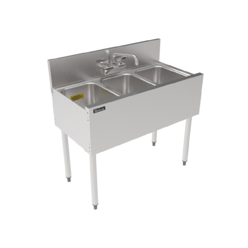 Perlick TS36M3 TS Series Underbar Multi-tank Sink Unit Three 18 Gauge Stainless Steel Compartment