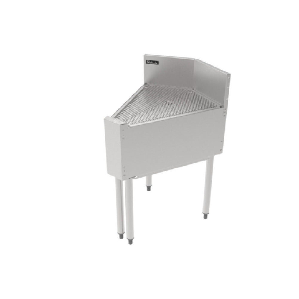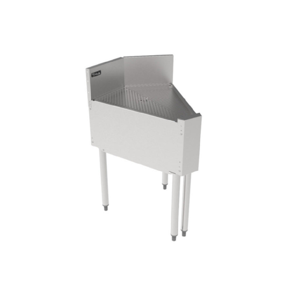 The Perlick TSF45D-FI TSF Series Underbar Inside Corner Drainboard is engineered for optimized functionality in compact and dynamic bar environments. Featuring a 45-degree angle clipped corner, it is designed to seamlessly integrate into tight spaces without sacrificing utility or style. The drainboard top is precisely pitched, ensuring effective drainage and minimizing water accumulation, which is critical in maintaining a clean and efficient work area. Constructed entirely from stainless steel, this drainboard guarantees durability and resistance against corrosion, making it suitable for rigorous use in high-demand settings. The inclusion of a backsplash aids in preventing spillage and protecting surrounding surfaces, further enhancing its practical design. A 1-1/2 inch drain is incorporated to facilitate rapid water disposal, supporting uninterrupted workflow. Notably, this model lacks legs and is intended to be attached directly to adjacent equipment, providing stability and continuity in underbar setups. The Perlick TSF45D-FI is an ideal solution for establishments seeking to maximize their underbar space with a robust and reliable drainage solution, catering effectively to the needs of bars, restaurants, and hospitality venues that prioritize efficiency and quality in their service areas.