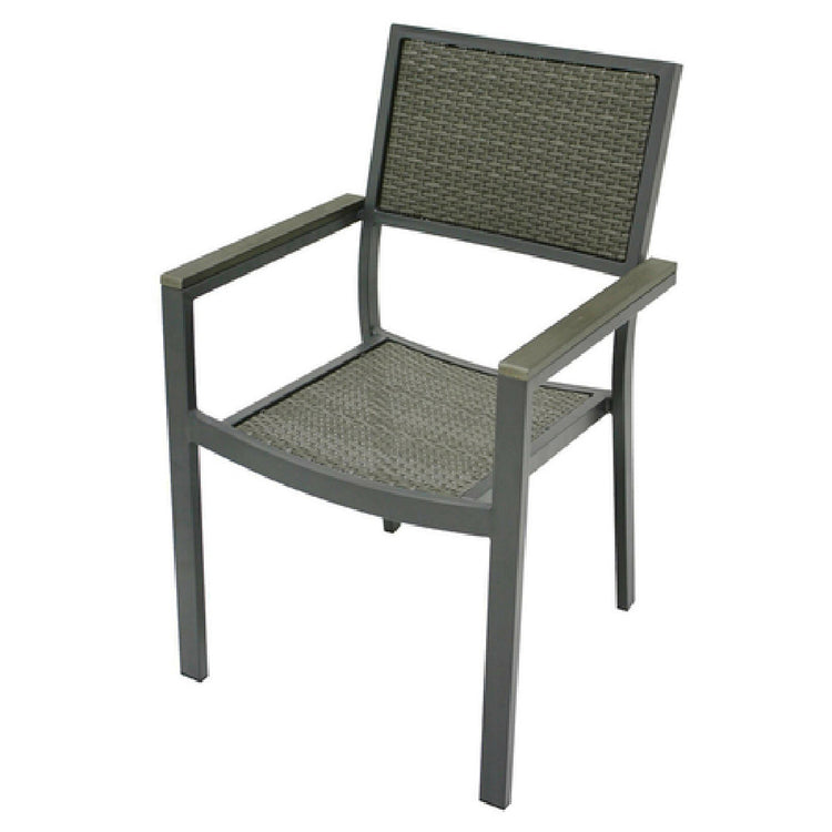 Plantation Prestige Commercial Furniture LLC, 8761100-0455, Durango Dining Arm Chair, stackable, designed for outdoor/indoor use, gray woven back & seat, aluminum frame, gunmetal finish