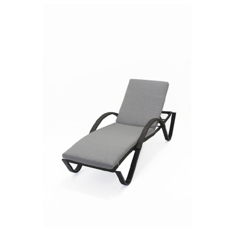 Plantation Prestige Commercial Furniture LLC, 8770900-025402, Durango Chaise Lounge, includes Sunbrella® fabric cushion, tubular aluminum frame, dark gray wicker armrest