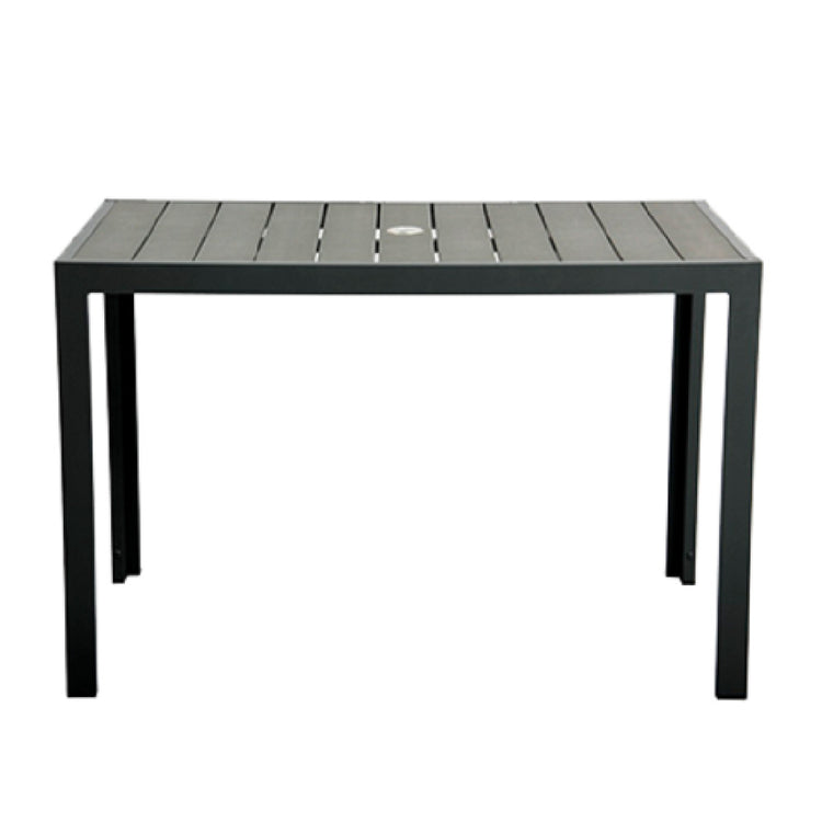 Plantation Prestige Commercial Furniture LLC, 8773030-01, Durango Table, square, 30" x 30", dining height, faux wood slat table top, with umbrella hole, designed for outdoor/indoor use, aluminum frame
