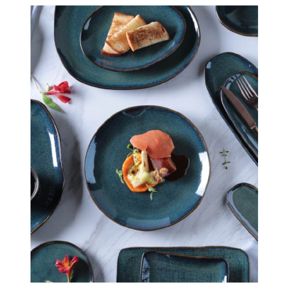 The Porto Brasil 14214106701 Shallow Organic Plater Large Oval is an elegantly designed tableware piece that showcases a unique blend of functionality and style. Crafted from durable stoneware, this platter measures 14.2 inches by 5.1 inches, making it suitable for various culinary presentations. Its large, oval shape offers a versatile platform for serving a wide array of dishes, from appetizers to main courses. The platter is stackable, enhancing storage efficiency in both home and professional settings. It is designed to withstand the rigors of modern kitchens, being dishwasher, microwave, oven, and freezer safe. This feature set ensures it seamlessly integrates into diverse culinary environments, from bustling restaurant kitchens to sophisticated home dining settings. Available in an enchanting oceano color, the Porto Brasil Shallow Organic Plater adds a touch of elegance to any table setting. With 12 platters packed per case, it caters to various market segments, providing a cost-effective solution for bulk purchasing. Whether for an upscale dining establishment or a home kitchen seeking a touch of sophistication, this platter combines practicality with a visually appealing design, making it a valuable addition to any tableware collection.