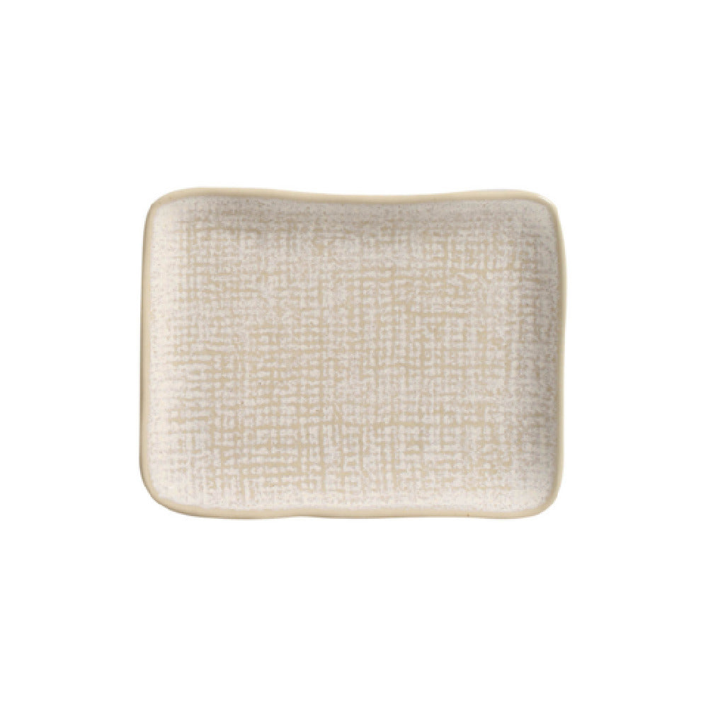 The Porto Brasil 15064108501 Platter Juta Rectangular is an elegantly designed tableware item, crafted from durable stoneware. Measuring 7.1 inches by 5.5 inches, this rectangular platter offers a compact yet stylish solution for serving. With a design that emphasizes both form and function, it is stackable, optimizing space in any kitchen environment. The platter is versatile across various cooking and storage conditions, being dishwasher, microwave, oven, and freezer safe, ensuring it meets the diverse needs of modern households and professional kitchens alike. The latte color adds a subtle sophistication, enhancing any table setting it is part of. Sold in cases of 12, this product is ideal for bulk purchases, catering to the needs of restaurants, hotels, and catering businesses, providing a blend of aesthetic appeal and practicality. The Porto Brasil platter is a reliable choice for those seeking to combine style with functionality in their dining experiences.