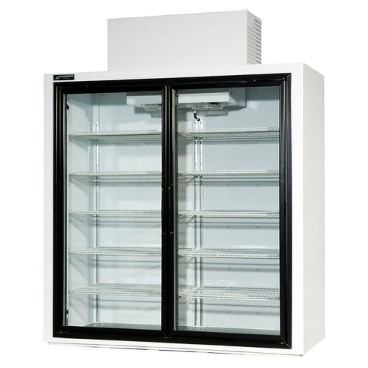 Powers, BT70SD, Beverage Cooler, two-section, 70"W, 70.0 cu. ft. capacity, top mount self-contained refrigeration, (2) hinged glass doors, (10) adjustable coated wire shelves, electronic temperature control, LED interior lighting, stainless steel floor, powder coat exterior, 1/2 HP, 115v/60/1-ph, 13.0 amps, Made in USA