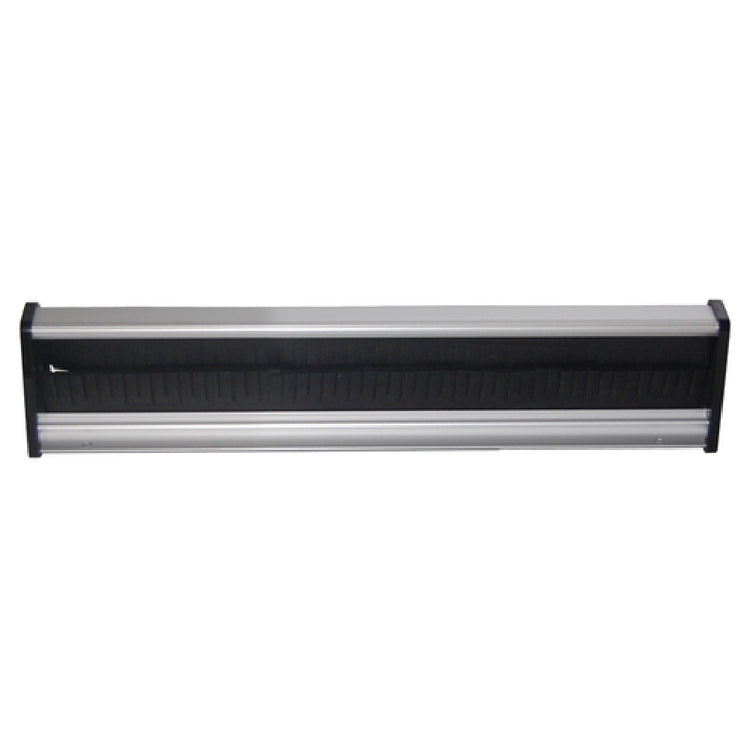 The Prince Castle 918-B Mop & Broom Holder - 18"W Wall Mount is a high-quality organizational tool designed for efficient storage and accessibility. Constructed from durable aluminum and rubber, this holder offers a robust solution tailored for commercial and industrial settings where space optimization and ease of access are paramount. The 18-inch width provides ample space for securely holding a variety of cleaning implements, which enhances operational efficiency in hospitality, janitorial, and other maintenance-heavy industries. Its wall-mounted design ensures that mops and brooms are held firmly in place, reducing clutter and promoting a safer work environment. The combination of aluminum and rubber materials delivers both strength and flexibility, ensuring long-lasting performance and accommodating frequent use. This product is ideal for businesses seeking to streamline their cleaning processes while maximizing workstation organization. The Prince Castle 918-B not only supports improved workflow but also contributes to upholding high standards of cleanliness and safety by keeping essential cleaning tools readily accessible and neatly stored. Its minimalist design and solid construction make it a practical and indispensable addition to any facility management toolkit, appealing to a wide range of market segments that prioritize reliability and functionality in their equipment choices.