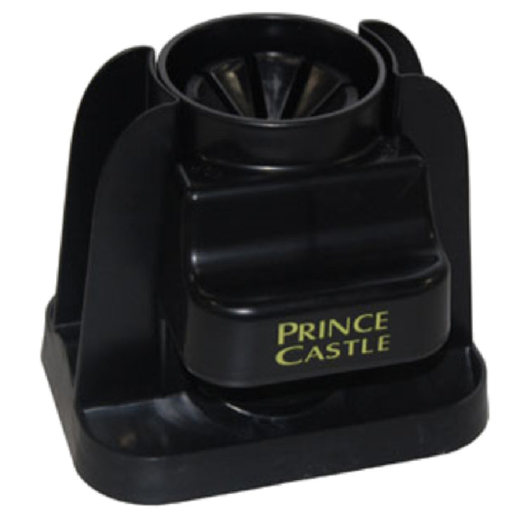 The Prince Castle CW-1 Citrus Saber® Wedger is a precision-engineered tool designed to meet the high demands of commercial kitchens, specifically tailored for efficiently wedging citrus fruits. This model features an 8-section design, providing uniform and consistent citrus wedges that enhance presentation and portion control, ideal for use in restaurants, bars, and catering businesses. The CW-1 is equipped with a replaceable stainless steel blade, ensuring long-lasting sharpness and durability, a critical factor for establishments with high citrus consumption. The blade's stainless steel construction not only ensures resistance to corrosion but also maintains hygiene standards crucial in food preparation. The wedger's black plastic construction offers a lightweight yet resilient build, facilitating ease of use and reducing operator fatigue during repetitive tasks. Certified by NSF, the Prince Castle CW-1 meets stringent public health and safety requirements, making it a reliable choice for foodservice environments. Its modular design allows for straightforward maintenance and quick blade replacements, minimizing downtime and enhancing operational efficiency. The Prince Castle CW-1 Citrus Saber® Wedger stands out as a versatile tool that addresses the specific needs of various market segments, delivering consistent performance and quality in citrus wedging applications.