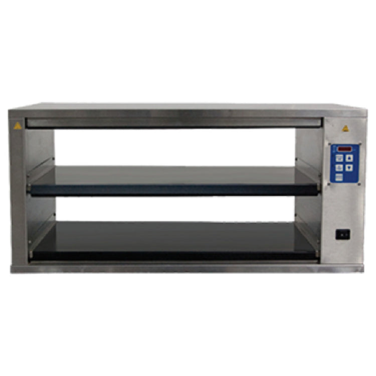 The Prince Castle DHB-P1A Dedicated Holding Bin is a versatile countertop unit designed with a pass-thru configuration, optimizing efficiency in food service operations. This holding bin features two shelves capable of accommodating up to six 1/3 size pans and four 1/2 size pans, though pans are not included. Utilizing Reli-A-Temp™ infrared heating technology, the DHB-P1A ensures consistent temperature maintenance through its four independently controlled heaters, allowing for precise heating control without the need for timers. Its solid state digital controls and on/off switch provide straightforward operation, while its construction from stainless steel and aluminum ensures durability and longevity. With an electrical output of 2220 watts and 13.87 amps, it operates on 208-240v/50/60/1-ph, using a NEMA L6-15P plug. Certified by UL, cUL, UL-Sanitation, and CE, this holding bin meets rigorous safety and sanitation standards, making it suitable for various food service environments. The Prince Castle DHB-P1A Dedicated Holding Bin is an essential asset for industries requiring reliable and efficient food holding solutions, providing exceptional utility through its innovative design and robust construction.