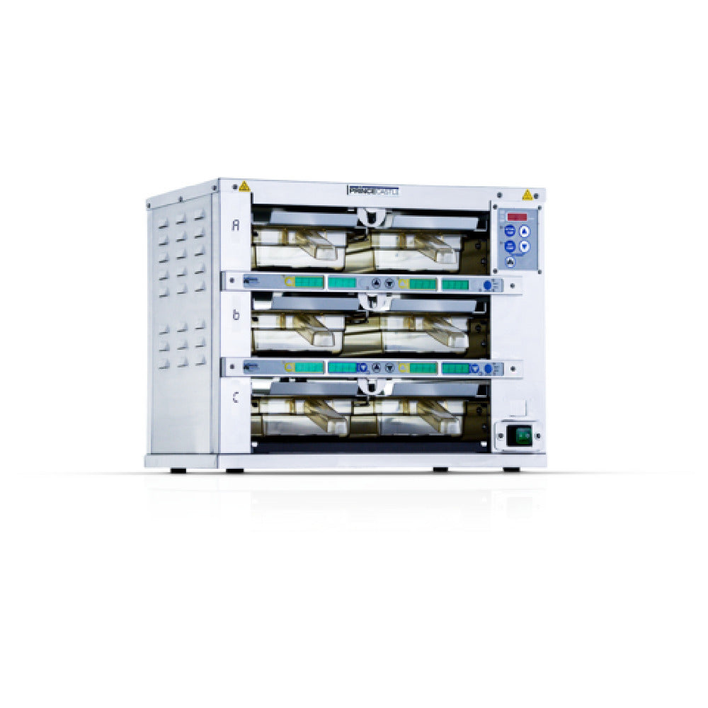 Prince Castle, EHB22R2-GMS60 (U.K./EUROPE), Extended Holding Bin, countertop, dual-side, pass-through, 2-shelf & 4 pan, (includes 4 X 1/3 sized pans And 2 covers), (6) menu options, USB port, digital display, stainless steel construction, 208-240v/50/60/1-ph, 1050 watts, Schuko plug, cULus, NSF