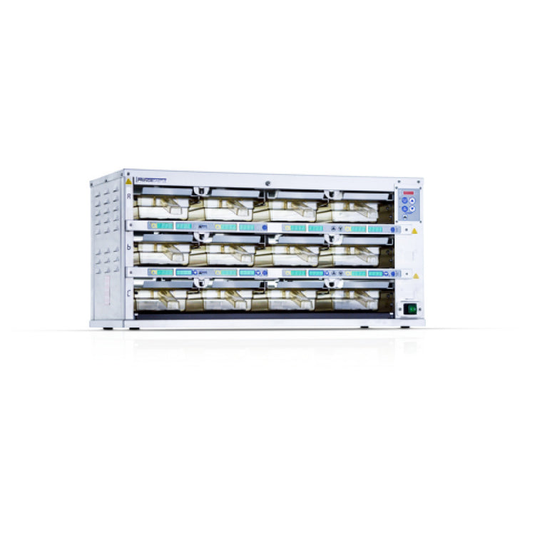 Prince Castle, EHB34R2-GMS50 (EUROPE/LATIN AM), Extended Holding Bin, countertop, dual-side, pass-through, 3 shelf & 12 pan, (includes 12 X 1/3 sized pans And 6 covers), (6) menu options, USB port, digital display, stainless steel construction, 208-240v/60/1-ph, 3760 watts, Iec 60309 16A plug, cULus, NSF