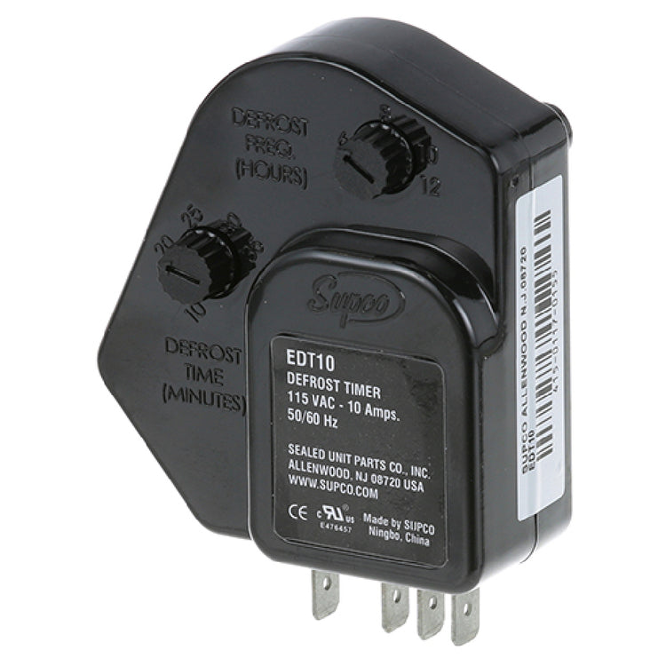 Private Label 421792 Electronic Adjustable Defrost Timer, 115v 10 Amp Max 1/3 Hp Compressor, Adjustable Defrost Frequency 4 To 12 Hr, Adjustable Defrost Time 10 To 35 Min, Temp Range 32 To 135 F, 4ea. 1/4" Tab Terminals.