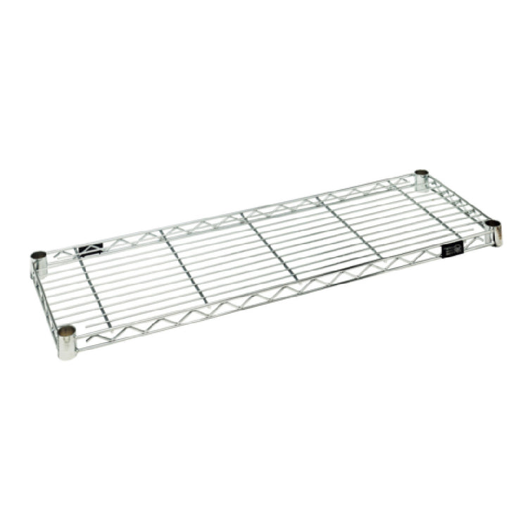 The Quantum 1230C Wire Shelf is a meticulously crafted storage solution, boasting a width of 30 inches and a depth of 12 inches. This shelf is engineered to support a weight capacity ranging from 600 to 800 pounds, making it an ideal choice for a variety of industrial and commercial applications. Its chrome-plated finish not only enhances its durability but also provides a sleek, modern appearance that complements any workspace. The Quantum 1230C is NSF certified, underscoring its compliance with rigorous standards for public health protection and its suitability for use in environments that demand high levels of hygiene, such as food service industries. This versatile wire shelf is particularly valuable across different market segments, from warehouse storage solutions to retail displays, where reliable weight support and optimal space utilization are critical. The robust construction and adaptable design ensure that it meets the diverse needs of various industries, providing both reliability and efficiency. Whether used in a bustling restaurant kitchen or an organized office supply room, the Quantum 1230C Wire Shelf is a practical and durable addition to any professional setting, delivering unparalleled performance and quality.