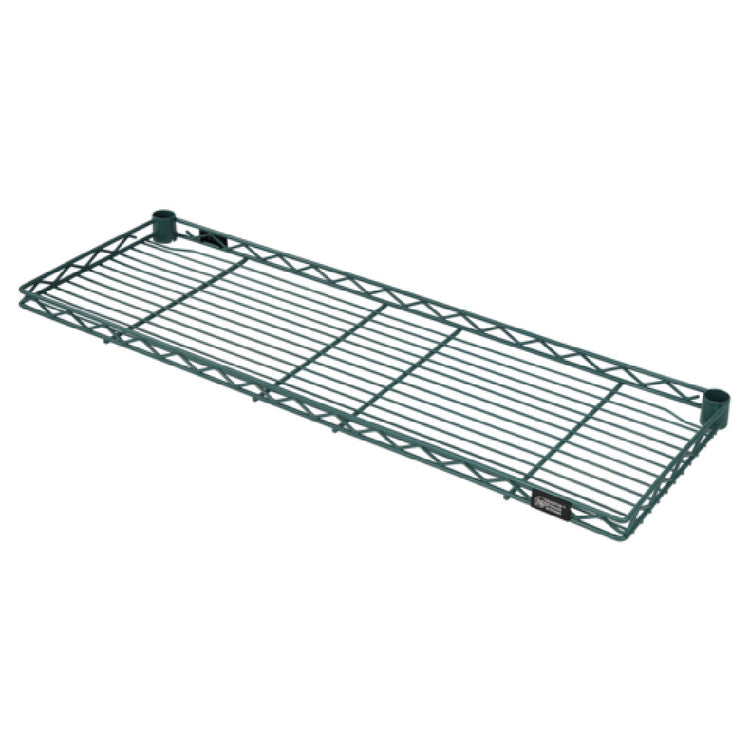 Quantum 1230RCSP Wire Shelf Cantilevered 30"W x 12"D is an exceptional storage solution that combines functional design with advanced technology, catering to diverse industry needs. This cantilevered wire shelf measures 30 inches in width and 12 inches in depth, providing a compact yet efficient storage space that is ideal for various applications, including healthcare, food service, and commercial environments. One of its standout features is the 1-inch retaining ledge around the shelf, which ensures the secure placement of items and prevents accidental slipping or falling. The green epoxy antimicrobial finish not only enhances durability but also offers a hygienic surface that mitigates the growth of bacteria and other microbes, making it particularly suitable for settings where cleanliness is paramount. Additionally, the Quantum 1230RCSP Wire Shelf is NSF certified, underscoring its adherence to strict public health and safety standards, which is a crucial consideration for industries such as food and healthcare. This shelf is designed to integrate seamlessly into existing storage systems, offering a reliable and durable option for professionals seeking efficient and sanitary storage solutions. Its thoughtful design and compliance with industry standards make it a versatile choice for enhancing organizational efficiency across various sectors.