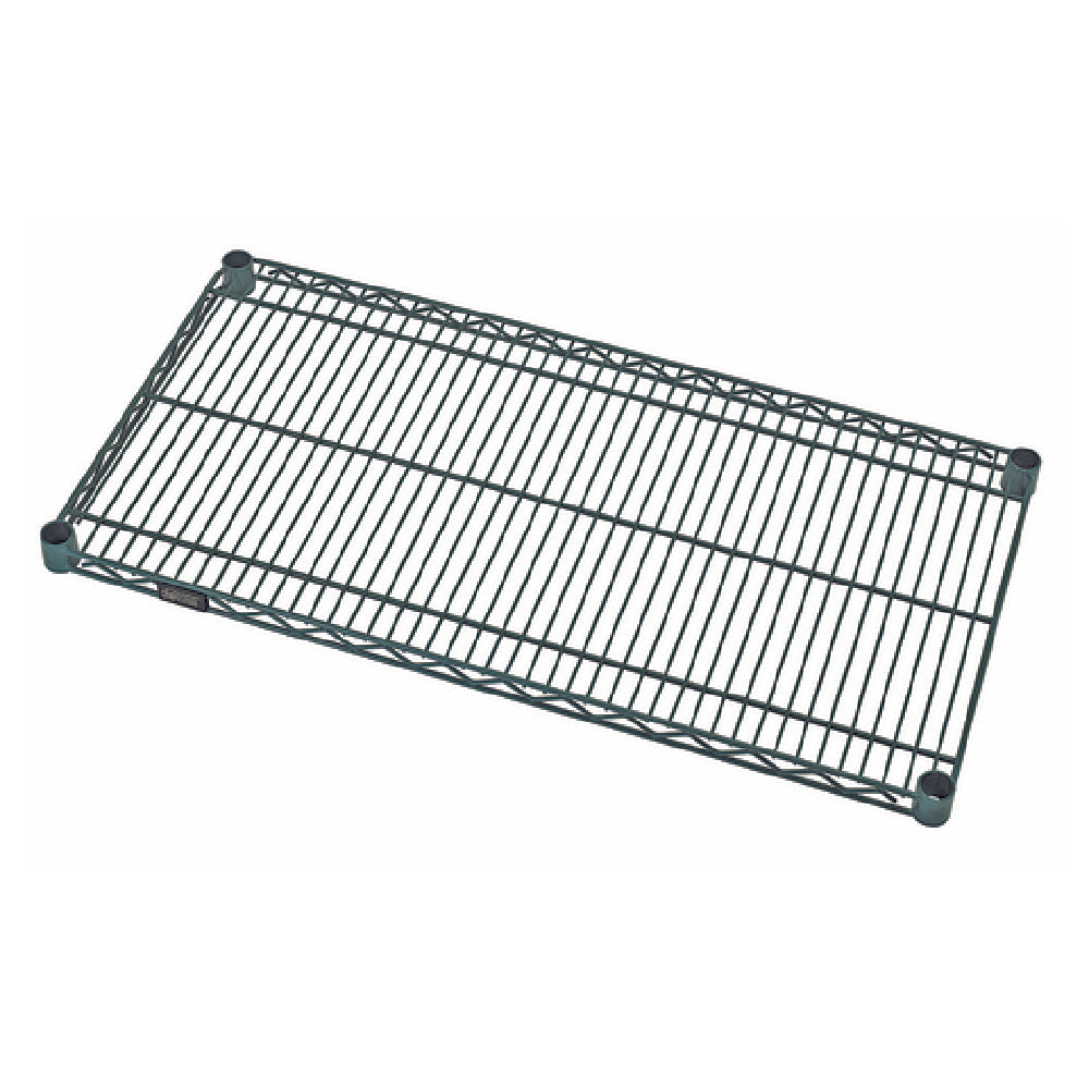 The Quantum 1236GY Wire Shelf is a versatile and durable storage solution, designed with precision to accommodate varying weight requirements, ranging from 600 to 800 pounds. With dimensions of 36 inches in width and 12 inches in depth, it offers ample space for organizing and storing a wide array of items. The shelf is coated with a gray epoxy antimicrobial finish, which not only provides a sleek, professional look but also enhances its resistance to microbial growth, making it an ideal choice for environments where hygiene is paramount. This feature, along with its NSF certification, attests to its suitability for use in food service, healthcare, and industrial settings where adherence to strict sanitation standards is required. The Quantum 1236GY Wire Shelf is engineered to meet the demands of various industries, ensuring reliable performance and longevity even under heavy-duty use. Its robust construction and finish are designed to withstand the rigors of daily operations, providing businesses with a practical and effective storage system that maximizes space efficiency while maintaining high standards of cleanliness and durability.