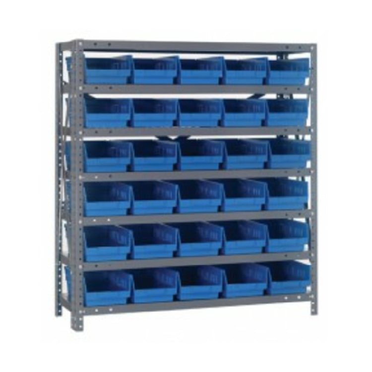 The Quantum 1239-102 Shelving Unit 12"D X 36"L X 39"H Heavy Duty is a high-performance storage solution designed for various industrial applications. This robust shelving unit features a substantial load capacity of 400 lb. per shelf, making it suitable for heavy-duty storage needs. The unit measures 12 inches in depth, 36 inches in length, and 39 inches in height, providing ample space for organizing materials efficiently. Included with the shelving unit are seven shelves, offering versatility in arranging items. Additionally, it comes with 48 bins each measuring 11-5/8"L x 6-5/8"W x 4"H, identified by the model number QSB102, and available in multiple colors for easy categorization and accessibility. The construction of the unit utilizes a galvanized steel finish, ensuring durability and resistance to corrosion, which is essential for longevity in demanding environments. Uprights and cross bars are integral to the design, contributing to the shelving unit's structural integrity and stability. This shelving solution is ideal for various market segments, including warehouses, workshops, and retail spaces, where efficient space utilization and reliable storage capabilities are paramount. The Quantum 1239-102 Shelving Unit stands out as a reliable and versatile option for industries requiring durable and organized storage solutions.