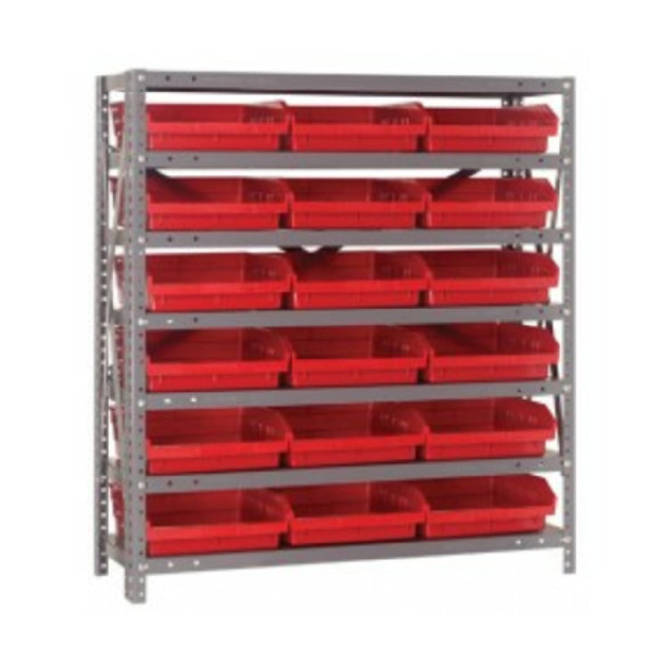 The Quantum 1239-109 Shelving Unit 12"D x 36"L x 39"H Heavy Duty is engineered for robust storage solutions, featuring a remarkable 400 lb. load capacity per shelf. This shelving unit includes seven shelves equipped with eighteen versatile bins, each measuring 11-5/8"L x 11-1/8"W x 4"H (QSB109) and available in an array of colors, catering to varied organizational needs. Constructed with a galvanized steel finish, it offers durability and resistance to wear, making it suitable for industrial environments. The unit's dimensions are specifically designed to maximize storage efficiency within a compact footprint. Uprights and cross bars provide structural integrity, ensuring stability under heavy loads. This shelving unit is ideal for sectors requiring heavy-duty storage solutions, such as warehouses, manufacturing facilities, and workshops. Its ability to accommodate a wide variety of bin colors allows for customizable storage that meets the unique aesthetic or functional demands of different professional settings. The Quantum 1239-109 Shelving Unit stands out as a reliable and customizable option for industries that prioritize both organization and strength in their storage systems.