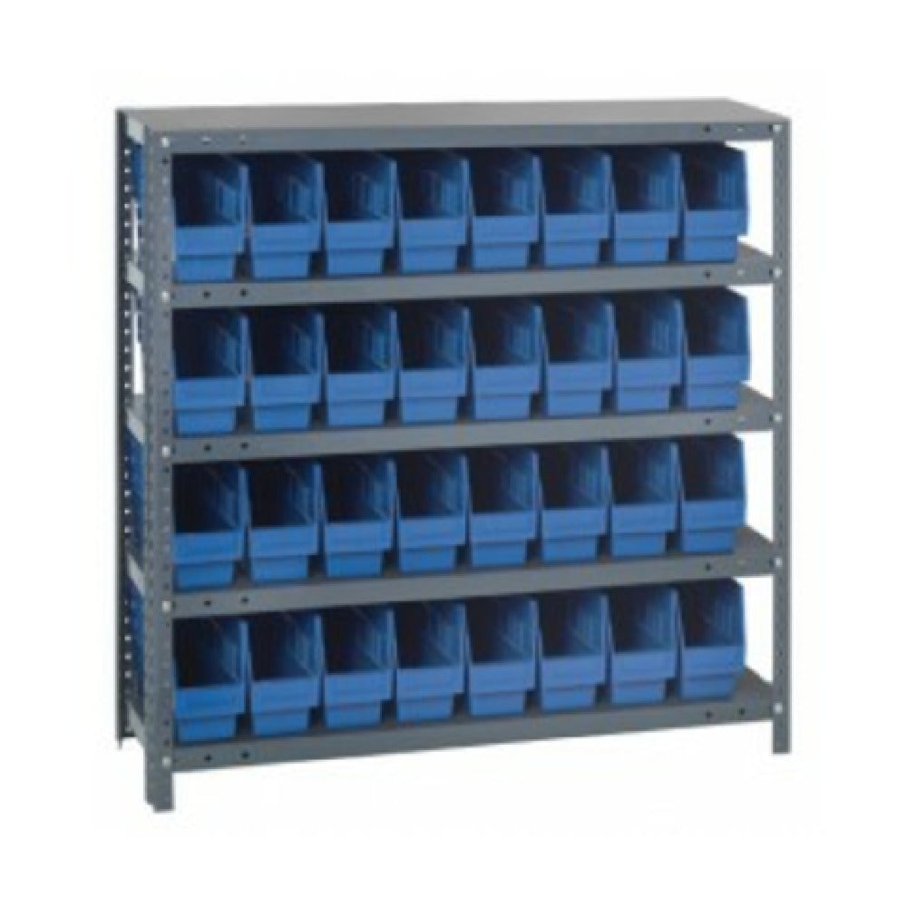 The Quantum 1239-201 Shelving Unit is a heavy-duty storage solution designed for various industrial and commercial applications. With dimensions of 12 inches in depth, 36 inches in length, and 39 inches in height, this shelving unit is engineered to maximize storage efficiency in compact spaces. Each shelf boasts a formidable load capacity of 400 pounds, ensuring robust support for heavy items. The unit includes five sturdy shelves, providing ample space for organized storage. It also comes equipped with 18 bins, each measuring 11-5/8 inches long, 4-1/8 inches wide, and 6 inches high (QSB201), available in multiple colors, adding a customizable element to meet specific user needs. The shelving unit is constructed with a galvanized steel finish, enhancing durability and corrosion resistance, making it suitable for demanding environments. Additionally, it features uprights and cross bars, contributing to its structural integrity and stability. The Quantum 1239-201 Shelving Unit is a versatile asset for industries ranging from warehousing to retail, offering a reliable storage solution that combines functionality with robust design. Its heavy-duty construction and adaptable bin system cater to diverse storage requirements, making it a valuable addition to any organizational setup seeking efficiency and durability.
