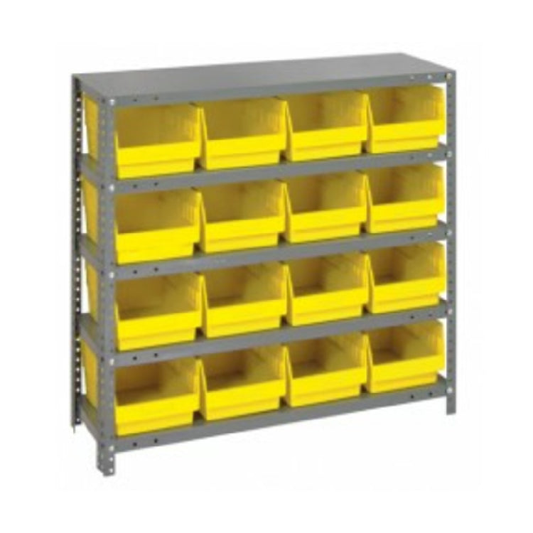 The Quantum 1239-207 Shelving Unit is a heavy-duty storage solution designed for robust organizational needs, featuring dimensions of 12"D x 36"L x 39"H. This unit is constructed with a galvanized steel finish, providing durability and resistance to corrosion, making it suitable for industrial environments. It boasts a remarkable load capacity of 400 lb. per shelf, ensuring it can handle a diverse range of materials and equipment. This shelving unit includes five shelves, offering ample storage space, and comes with 16 bins sized at 11-5/8"L x 8-3/8"W x 6"H (QSB202). The bins are available in multiple colors, allowing for efficient categorization and visual organization. The inclusion of uprights and cross bars enhances stability and support, making it ideal for various segments such as warehouses, workshops, and commercial spaces that require reliable and spacious storage options. The Quantum 1239-207 Shelving Unit’s design is tailored to meet the high demands of professional environments, making it a versatile and practical choice for organizations seeking to optimize their storage capabilities with a focus on strength and adaptability. This product effectively addresses the need for heavy-duty storage with its superior load capacity and sturdy construction.