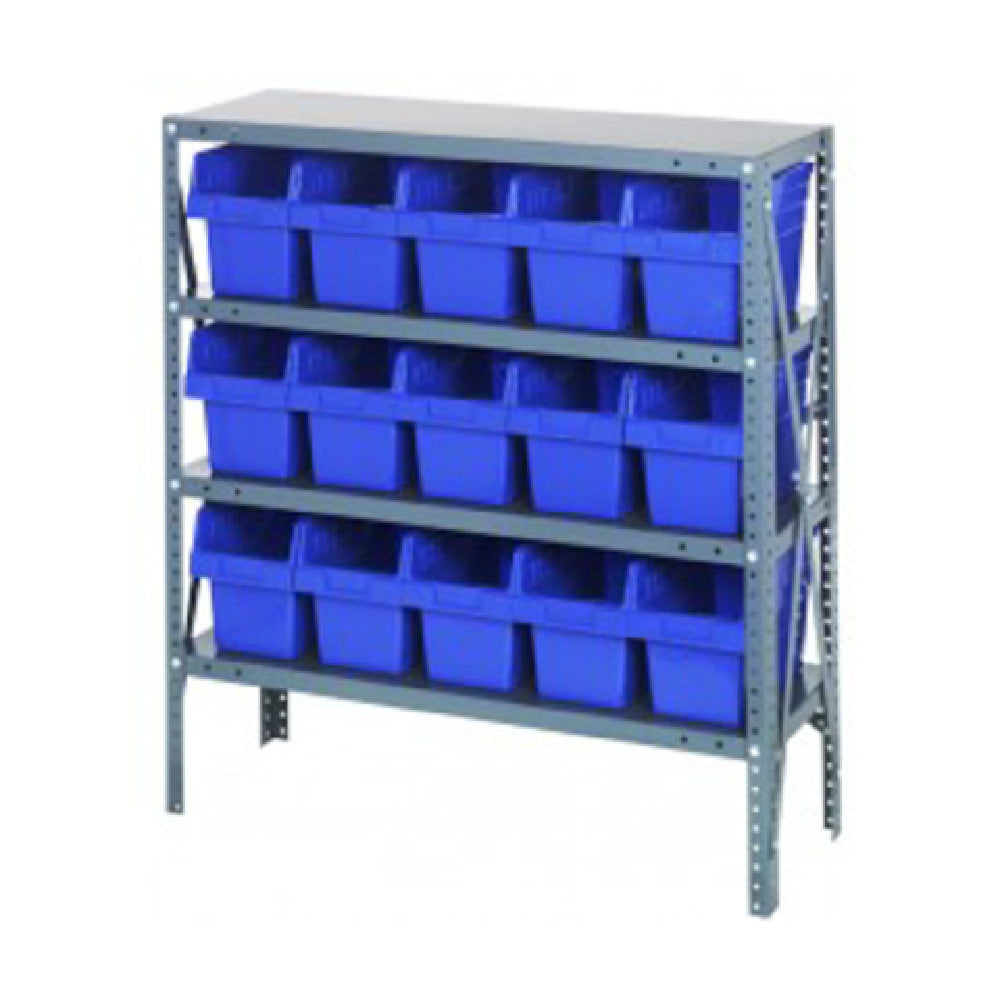 The Quantum 1239-SB802 Shelving Unit 12"D X 36"L X 39"H Heavy Duty is a robust storage solution designed to meet diverse organizational needs across various industries. This versatile unit is constructed with galvanized steel, ensuring durability and resistance to wear and tear in demanding environments. Each of its four shelves boasts an impressive 400 lb. load capacity, making it suitable for storing heavy equipment or multiple items securely. The shelving unit includes 15 bins, each measuring 11-5/8"L x 6-5/8"W x 8"H, which are available in multiple colors to enhance sorting and visual organization. Its compact dimensions of 12 inches deep, 36 inches long, and 39 inches high make it an ideal fit for spaces where maximizing vertical storage is critical. The package also includes uprights and crossbars, contributing to the stability and adaptability of the unit. The Quantum 1239-SB802 is particularly beneficial for sectors requiring efficient material handling and storage solutions, such as warehousing, manufacturing, and retail. Its robust construction coupled with flexible bin storage offers a practical solution for organizing tools, parts, or products, ensuring that this shelving unit stands as a valuable asset for optimizing space and improving workflow efficiency.