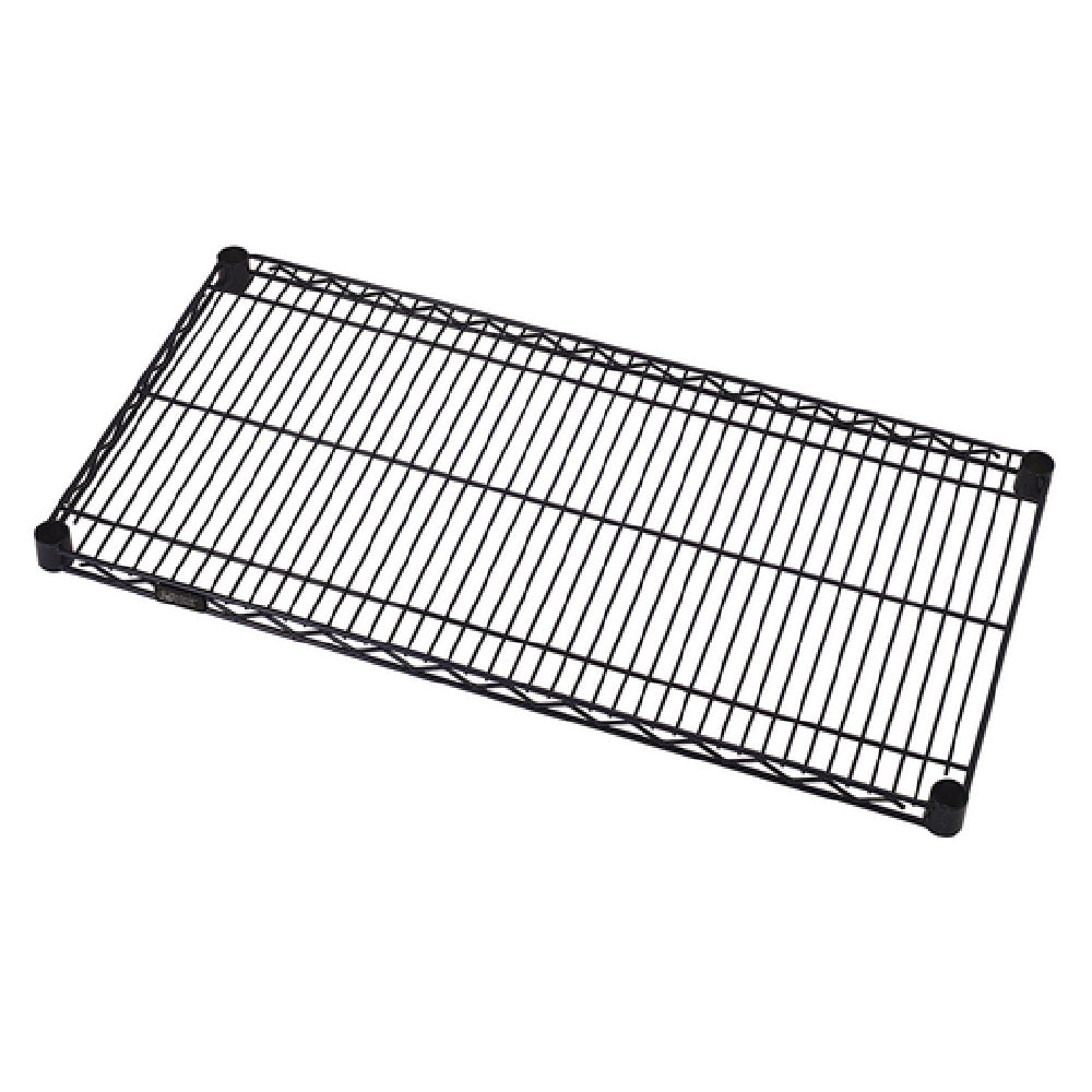 The Quantum 1242BK Wire Shelf stands out as a versatile storage solution with its dimensions of 42 inches in width and 12 inches in depth. Engineered to support a weight capacity ranging between 600 to 800 pounds, this shelf is adept at meeting the varying demands across different industries, from warehousing to retail environments. Its black epoxy finish not only adds a sleek aesthetic but also incorporates antimicrobial properties, ensuring a hygienic storage environment, a feature particularly beneficial for sectors concerned with cleanliness and safety standards. The shelf’s NSF certification further affirms its suitability for use in regulated environments, such as food service and healthcare settings. This blend of durable construction, substantial weight capacity, and enhanced surface protection positions the Quantum 1242BK as a valuable asset for businesses seeking reliable and safe shelving solutions. Its ability to maximize storage efficiency while maintaining adherence to health standards makes it particularly appealing to those in the food and medical industries, where both capacity and cleanliness are paramount. The Quantum 1242BK Wire Shelf, with its technical specifications, provides an effective and adaptable platform for organizations aiming to optimize their storage systems without compromising on health and structural integrity.