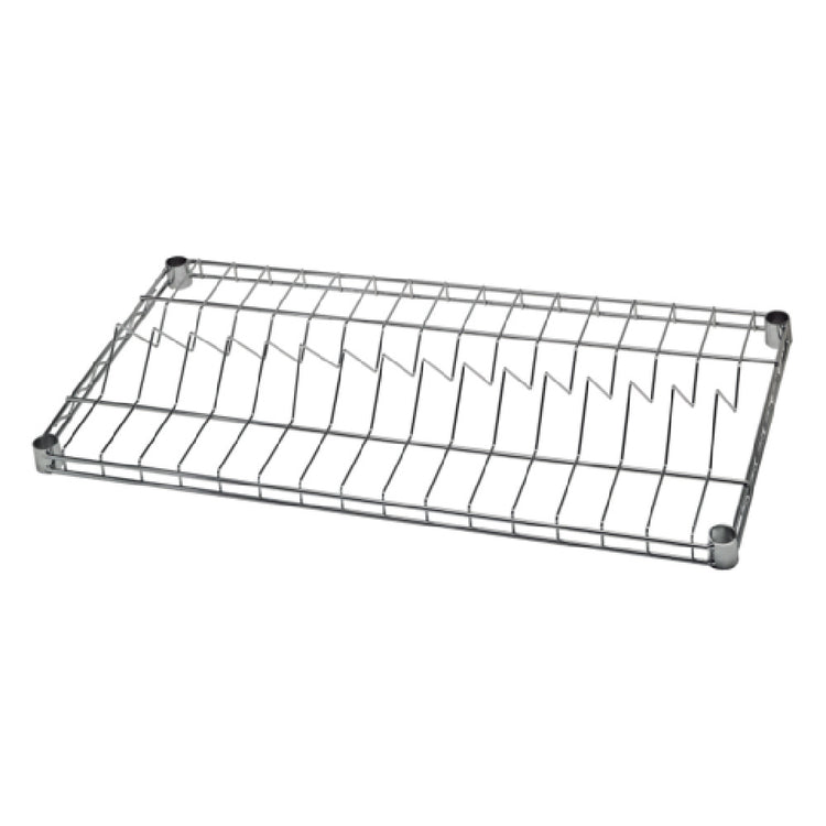 The Quantum 1836R16C Wire Reel Shelf is an industrial-grade storage solution designed for maximizing efficiency and organization in environments that handle a variety of wire reels. Measuring 36 inches in width and 18 inches in depth, this shelf is engineered to support a substantial load capacity of 400 pounds per shelf, accommodating up to 15 wire reels ranging from 13 to 15 inches in size. With its chrome-plated finish, the shelf not only offers a visually appealing appearance but also enhances its durability and resistance to corrosion, making it suitable for demanding work environments. The inclusion of NSF certification underscores its compliance with stringent health and safety standards, ensuring that it meets the requisite quality benchmarks for use in professional settings. This wire reel shelf is particularly beneficial for industries requiring organized reel storage, including telecommunications, electrical, and manufacturing sectors. Its robust build ensures reliability, while its standardized dimensions and high capacity make it a versatile addition to any workspace requiring efficient reel management. By providing a dedicated solution for wire reel storage, the Quantum 1836R16C helps streamline operations, reduce clutter, and enhance accessibility, offering a unique value proposition for businesses focused on productivity and organization.