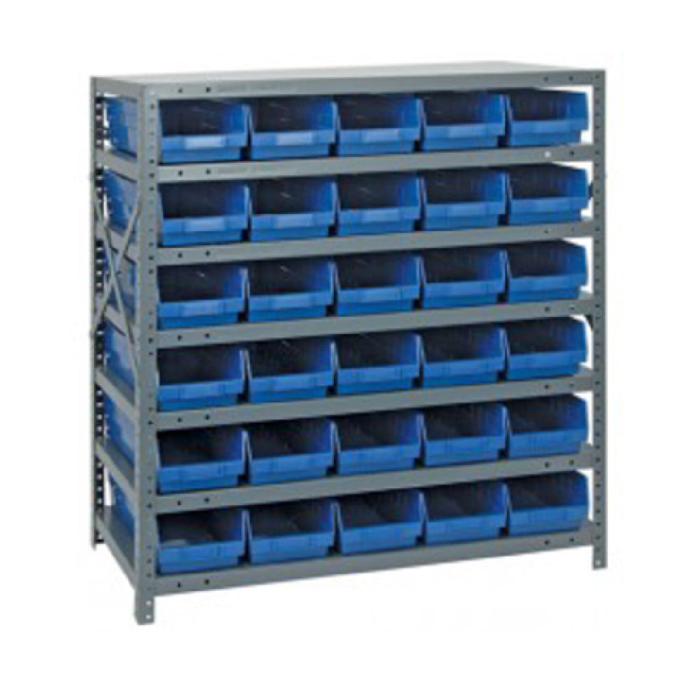 The Quantum 1839-104 Shelving Unit is a heavy-duty storage solution designed to meet diverse industrial and commercial needs. With dimensions of 18"D x 36"L x 39"H, this shelving unit provides ample storage space while maintaining structural integrity. It boasts a remarkable load capacity of 400 lb per shelf, ensuring it can handle substantial weight with ease. The unit includes seven shelves and is equipped with thirty 17-7/8"L x 6-5/8"W x 4"H (QSB104) bins, available in multiple colors, enhancing organizational capabilities and allowing for color-coded sorting. Constructed with a galvanized steel finish, it offers durability and resistance to corrosion, suitable for challenging environments. The inclusion of uprights and cross bars contributes to its sturdy design, ensuring stability and reliability. This shelving unit is particularly valuable for sectors that require robust storage solutions, such as warehousing, manufacturing, and retail, where efficient organization of tools, parts, or inventory is crucial. Its versatility and capacity make it a practical choice for optimizing space and enhancing workflow efficiency. The Quantum 1839-104 Shelving Unit is an excellent investment for businesses seeking a reliable and adaptable storage system to meet their operational demands.