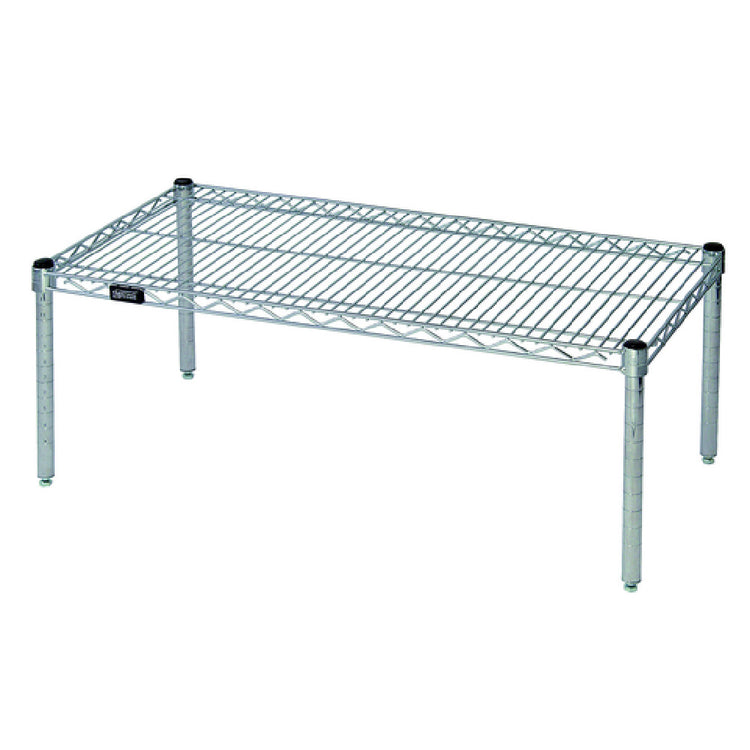 The Quantum 184814PC Platform Rack is engineered with precision to cater to diverse industrial storage needs, boasting dimensions of 48 inches in width, 18 inches in depth, and 14 inches in height. This robust platform rack is designed to support a significant weight capacity ranging from 600 to 800 pounds, making it a versatile solution for various storage requirements. Its chrome-plated finish not only enhances its aesthetic appeal but also provides added durability and resistance to corrosion, ensuring longevity in demanding environments. As an NSF-certified product, the Quantum 184814PC Platform Rack meets stringent public health and safety standards, making it a reliable choice for industries where hygiene is paramount. This platform rack is highly suitable for sectors that require efficient storage solutions, including warehouses, manufacturing facilities, and retail spaces, offering a blend of strength, durability, and compliance with safety standards. Its sturdy construction and ample capacity make it an indispensable asset for businesses looking to optimize their storage capabilities while maintaining a high level of operational efficiency.