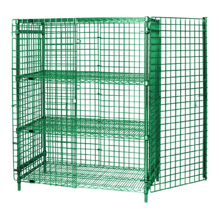 The Quantum 2436-63SECP-2 Security Unit Stationary 36"W X 24"D X 63"H is a meticulously designed storage solution that combines robust security features with exceptional functionality. This unit is stationary with dimensions of 36 inches in width, 24 inches in depth, and 63 inches in height, providing ample storage space while ensuring stability. It includes one top shelf, one bottom shelf, and two intermediate shelves, offering versatile storage options. The inclusion of a security panel set, which covers the back and sides, along with a pair of security panel doors, enhances the security of stored items, making it ideal for environments that require heightened protection measures. The unit is supported by four sturdy posts, ensuring structural integrity. Finished with a green epoxy antimicrobial coating, this unit not only resists microbial growth but also meets NSF standards, highlighting its suitability for industries that prioritize hygiene and safety, such as food service and healthcare sectors. The Quantum 2436-63SECP-2 Security Unit is an essential asset for businesses seeking a reliable and secure storage solution that effectively addresses their specific needs within industry regulations.