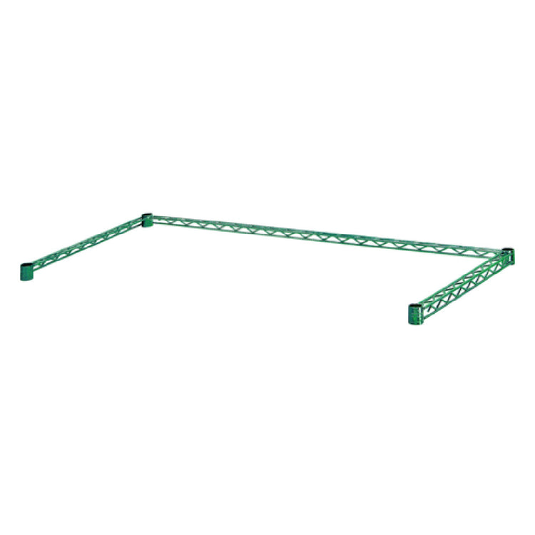 The Quantum 2460FP Wire Frame 3-sided 60"W X 24"D unit stands out with its distinctive green epoxy antimicrobial finish, making it a reliable choice for environments where hygiene is paramount. Spanning 60 inches in width and 24 inches in depth, this versatile wire frame is designed to accommodate a range of storage needs, fitting seamlessly into various industrial settings. Its three-sided build ensures stability and accessibility, streamlining organization and efficiency. The inclusion of the NSF certification assures compliance with rigorous public health standards, emphasizing the product's commitment to safety and quality. The antimicrobial finish not only enhances durability but also provides an added layer of protection against microbial growth, making the Quantum 2460FP ideal for sectors such as food service, healthcare, and pharmaceuticals where cleanliness is crucial. This product's unique value proposition lies in its combination of robust construction, ample dimensions, and specialized finish, which together cater to diverse market segments demanding both form and function. Whether utilized in commercial kitchens, medical facilities, or storage warehouses, the Quantum 2460FP meets the needs of professionals who prioritize both practicality and sanitation in their operational spaces.